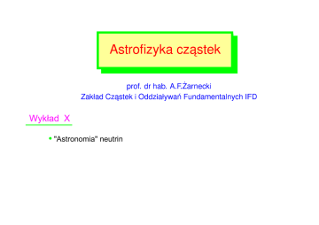 Astrozyka zastek prof. dr hab. A.F.Zarneki Zakad Czastek i Oddziaywań Fundamentalnyh IFD Wykład X • "Astronomia" neutrin t Log1 0m/eV 10 d 4 2 0 -2 τ c s 8 6 Massless ν’s? b • no νR • L conserved µ u Neutrino masses are really special! But νR can well exist and we really have no reason to expect that B and L are exactly conserved m t /(∆m 2 atm )1/2~10 12 Small ν masses? e Upper limit on mν (∆ m 2 sol ) 1/2 Planck (∆m 2 atm) 1/2 KamLAND • νR very heavy • L not exactly cons. The SM can be easily extended to include Majorana ν’s Neutrino Oscillations ◮ 1957: Bruno Pontecorvo proposed Neutrino Oscillations in analogy with K 0 ⇆ K̄ 0 oscillations (Gell-Mann and Pais, 1955) ◮ Flavor Neutrinos: ◮ Massive Neutrinos: ◮ A Flavor Neutrino is a superposition of Massive Neutrinos νe , νµ , ντ ν1 , ν2 , ν3 produced in Weak Interactions propagate from Source to Detector |νe i = Ue1 |ν1 i + Ue2 |ν2 i + Ue3 |ν3 i |νµ i = Uµ1 |ν1 i + Uµ2 |ν2 i + Uµ3 |ν3 i |ντ i = Uτ 1 |ν1 i + Uτ 2 |ν2 i + Uτ 3 |ν3 i ◮ U is the 3 × 3 Neutrino Mixing Matrix C. Giunti − Neutrino Masses − Moriond - Cosmology 2014 − 27 March 2014 − 2/21 |ν(t = 0)i=|νe i = Ue1 |ν1 i + Ue2 |ν2 i + Ue3 |ν3 i ν1 νe νµ ν2 ν3 source propagation detector |ν(t > 0)i = Ue1 e −iE1 t |ν1 i + Ue2 e −iE2 t |ν2 i + Ue3 e −iE3 t |ν3 i6=|νe i Ek2 = p 2 + mk2 at the detector there is a probability > 0 to see the neutrino as a νµ ! 2L 2 ∆m kj Neutrino Oscillations are Flavor Transitions ∝ sin2 4E νe → νµ νe → ντ νµ → νe νµ → ντ ν̄e → ν̄µ ν̄e → ν̄τ ν̄µ → ν̄e ν̄µ → ν̄τ 2 ≡ m2 − m2 transition probabilities depend on U and ∆mkj k j C. Giunti − Neutrino Masses − Moriond - Cosmology 2014 − 27 March 2014 − 3/21 Experimental Evidences of Neutrino Oscillations Solar νe → νµ , ντ VLBL Reactor ν̄e disappearance Atmospheric νµ → ντ LBL Accelerator νµ disappearance SNO, BOREXino Super-Kamiokande GALLEX/GNO, SAGE Homestake, Kamiokande (KamLAND) → Kamiokande, IMB MACRO, Soudan-2 ∆mS2 ≃ 7.6 × 10−5 eV2 sin2 ϑS ≃ 0.30 Super-Kamiokande (K2K, MINOS, T2K) LBL Accelerator νµ → ντ (Opera) LBL Accelerator νµ → νe LBL Reactor ν̄e disappearance (T2K, MINOS) Daya Bay, RENO Double Chooz → ∆mA2 ≃ 2.4 × 10−3 eV2 sin2 ϑA ≃ 0.50 → ∆mA2 sin2 ϑ 13 ≃ 0.023 C. Giunti − Neutrino Masses − Moriond - Cosmology 2014 − 27 March 2014 − 4/21 q23 – Dm322 : SK atm. and accelerators SK atm. 3n T2K 2011 T2K MINOS SK atm. L/E Future: T2K will reach accuracy of d(sin22q23)=0.01 and d(Dm232)=0.0001eV2. 8 q12 – Dm212 : solar and KamLAND-reactor H.Sekiya (ID:48) NU-EX03 +0.20 Δm212=7.45 -0.19 x10-5eV2 sin2θ12=0.304±0.013 5σ 4σ Green: Solar global dashed only SK+SNO Blue: KamLAND reactor Red: Solar global+KamLAND 3σ Combined Solar Data KamLAND f8B=(5.25±0.20) x 106/(cm2∙sec) 9 Summary of q13 measurements ±1s range sin22θ13 All results are consistent. Reactor combine: sin22θ13 =0.093 ± 0.009 10 1.0 Daya Bay KamLAND 0.4 0.6 E ≈ ∆m2A L 0.2 0.0 Pνe →νe 0.8 RENO E L ≈ ∆m2S E ≈ 4MeV (reactor νe) 10−1 10 1 L 102 [km] C. Giunti − Neutrino Masses − Moriond - Cosmology 2014 − 27 March 2014 − 5/21 103 Experimental Indications of Sterile Neutrinos ◮ LSND: Accelerator ν̄µ → ν̄e L ≃ 30 m 3.8σ excess ◮ ∆m2 & 0.2 eV2 (≫ ∆mA2 ≫ ∆mS2 ) [PRD 64 (2001) 112007] Reactor Electron Antineutrino Anomaly: ν̄e → ν̄e L ≃ 10 − 100 m 2.8σ deficit ◮ E ≃ 50 MeV ∆m2 & 0.5 eV2 E ≃ 4 MeV [Mention et al, PRD 83 (2011) 073006] Gallium Anomaly: νe → νe L ≃ 1m 2.9σ deficit ∆m2 & 1 eV2 E ≃ 1 MeV [SAGE, PRC 73 (2006) 045805] C. Giunti − Neutrino Masses − Moriond - Cosmology 2014 − 27 March 2014 − 13/21 1.0 Daya Bay 0.8 RENO 0.6 E ≈ ∆m2A L 0.4 E ≈ ∆m2SBL L 0.2 0.0 Pνe →νe KamLAND E ≈ 4MeV (reactor νe) 10−3 10−2 E L ≈ ∆m2S 10−1 1 L 10 102 [km] C. Giunti − Neutrino Masses − Moriond - Cosmology 2014 − 27 March 2014 − 14/21 103 Physics of wide energy range Solar neutrinos Atmospheric neutrinos High energy neutrino astronomy Supernova burst SN1987A 10 6 10 9 10 12 10 15 10 18 21 10 Energy (eV) 2 Many physics topics Origin of cosmic ray Acceleration mechanism Neutrino oscillations ne Supernova mechanism nm nt T.K.Gaisser(2006) Solar SN 10 6 Atmospheric 10 9 10 12 High energy 10 15 Dark matter 10 18 neutrinos 21 10 Energy (eV) 3 The concordance flat ΛCDM model... The simplest model consistent with present observations. ∑ m ν =0.06 eV (Nearly) Min. value from oscillations experiments Massless Neutrinos (3 families) ν-to-γ energy density ratio fixed by SM physics 5% 68% 27% Composition today Plus flat spatial geometry+initial conditions from single-field inflation 13.4 billion years ago (at photon decoupling) Neutrino astronomy Photon and proton mean free range path • Advantages w.r.t. other messengers: – Photons: interact with CMB and matter – Protons: interact with CMB and are deflected by magnetic fields • Drawback: large detectors (~GTon) are needed. n p Indirect DM searches ♠ DM e+ ′ _ p e+ DM ′ Neutrinos: Unperturbed propagation like for photons But signal significance (for the same target) usually considerably worse New feature: signals from the center of sun or earth! Torsten Bringmann, University of Hamburg Fig. from J.Edsjö Indirect detection of dark matter ‒ 71 ce Need HUGE volum Detection principle 110 m (@ 400nm) 20 m (@ 400nm) 25 m 59 m (@ 480nm) (@ 480nm) Array optical modules in ~60 m (@of 470nm) 100-300 m (@ 470nm) OR) transparent medium (ice/water) to detect Cherenkov light from absorption length → larger effective volume relativistic secondaries ring length → better timing, (ie pointing resolution) an O(10m) cascades, ν e ν τ neutral current neutrino detection in ice/water signatures O(km) long muon tracks (mostly sensitive to muons because the