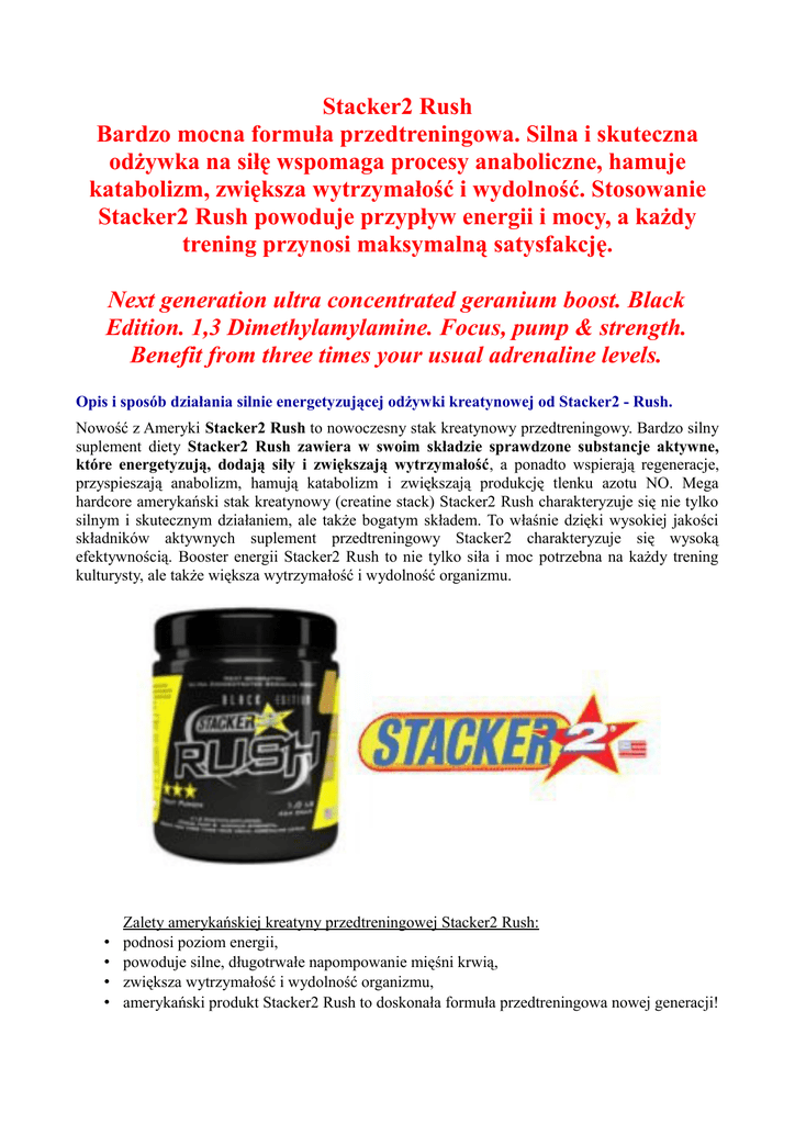 Stacker2 Rush Bardzo mocna formuła przedtreningowa. Silna i