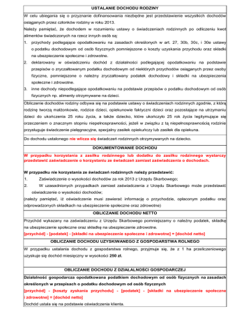USTALANIE DOCHODU RODZINY W celu ubiegania się o