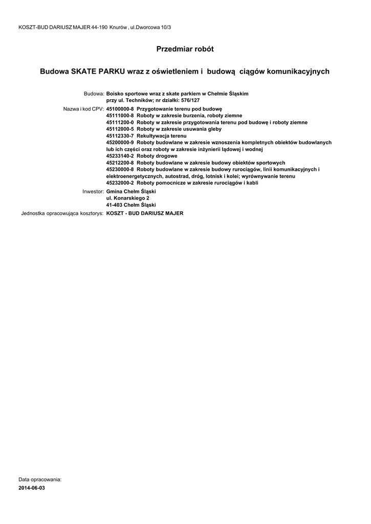 Przedmiar robót Skate Parku - BIP Urząd Gminy Chełm Śląski