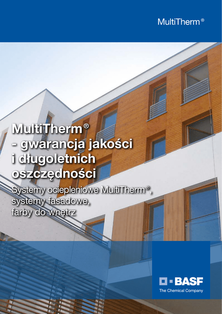 MultiTherm® - gwarancja jakości i długoletnich oszczędności Systemy ociepleniowe MultiTherm®, systemy fasadowe, farby do wnętrz SYSTEMY OCIEPLENIOWE Człowiek instynktownie poszukuje bezpieczeństwa i ciepła… Ciepło jest energią - jej zasoby nie są jednak nieograniczone, a i sama energia niej jest za darmo. Dlatego też energooszczędne budownictwo odgrywa ważniejszą rolę, aniżeli kiedykolwiek wcześniej. A wszystko to po to, by chronić środowisko i zasoby naturalne, lepiej wykorzystać dostępną energię oraz ograniczyć emisję CO2. Oto zadanie dla nowoczesnej i efektywnej izolacji cieplnej. Nie bez znaczenia jest też fakt, iż nowoczesne i energooszczędne rozwiązania przyczyniają się także znacząco do poprawy komfortu mieszkania oraz do ograniczenia kosztów. Ekonomiczne systemy ociepleniowe MultiTherm® oferują optymalne rozwiązanie dla każdego obiektu. Czy to w przypadku remontu starego budownictwa, planowania nowego obiektu, czy też renowacji kompleksu biurowego - nasz serwis doradztwa technicznego służy Państwu zawsze pomocą. Nasi technolodzy udzielą fachowej porady we wszelkich kwestiach dotyczących projektowania fasad przy użyciu systemów MultiTherm®. Oto wybór, który zawsze się opłaca. 2 MultiTherm® P i MultiTherm® Neo Systemy ocieplania z płytami izolacji cieplnej ze styropianu i mineralną warstwą zbrojącą Zaprawa klejowa Prince Color PHS Zaprawa klejowa Prince Color Z 301 PS Dyspersyjny klej Prince Color Z 301 DK (głównie do podłoży w budownictwie drewnianym) Zaprawa klejowa i zbrojąca Prince Color KAM Płyty izolacji cieplnej ze styropianu w systemie MultiTherm® P - fasadowa płyta styropianowa EPS w systemie MultiTherm® Neo - fasadowa płyta styropianowa MultiTherm® Grafit wykonana z Neoporu® łączniki zgodnie z projektem (opcjonalnie jako dodatkowe możliwości zamocowania) Prince Color KAM - zaprawa zbrojąca Siatka zbrojąca MultiTherm® z włókna szklanego Preparat gruntujący jako warstwa sczepna do tynku akrylowego Preparat gruntujący jako warstwa sczepna do tynku silikonowego Preparat gruntujący jako warstwa sczepna do tynku silikatowego Preparat gruntujący jako warstwa sczepna do tynku mineralnego Prince Color Multigrund PGU Prince Color Multigrund PGS Prince Color Multigrund PGT Prince Color Multigrund PGU Tynk akrylowy Tynk silikonowy Tynk silikatowy Tynk mineralny Prince Color Multiputz RA (rowkowy) Prince Color Multiputz ZA (drapany) Prince Color Multiputz RS (rowkowy) Prince Color Multiputz ZS (drapany) Prince Color Multiputz RT (rowkowy) Prince Color Multiputz ZT (drapany) Prince Color RM (rowkowy) Prince Color KM (drapany) Waschelputz (gładki) Farba elewacyjna Prince Color Multitop FA, FS lub FM Charakterystyka systemu • systemy oparte na izolacji ze styropianem posiadają aprobatę techniczną ITB AT-15‑7532/2012, a odmiany tego systemu posiadają europejskie aprobaty techniczne odpowiednio - MultiTherm® P - ETA 07/0328, a MultiTherm® Neo - ETA 08/0049 • stosowane są płyty styropianowe i mineralna zaprawa zbrojąca oparta na białych cemantach z udziałem włókien zbrojących, mocowanie: na klej, alternatywnie na klej i na łączniki • zastosowanie płyty EPS MultiTherm® Grafit wykonaniej z Neoporu® umożliwia uzyskanie dodatkowo minimum 16% oszędności energii przy zachowaniu tej samej grubości płyty izolacyjnej • łatwe, szybkie i proste wykonawstwo; klejenie i zbrojenie jest możliwe za pomocą jednego produktu • nadaje się do wszystkich podłoży, do starego i nowego budownictwa, zwłaszcza w budownictwie jedno- i wielorodzinnym, możliwość zastosowania w budynkach do wysokości 25 m lub do jedenastu kondygnacji; zastosowanie kleju dyspersyjnego Prince Color Z301 DK daje możliwość zastosowania systemu MultiTherm® P zgodnie z aprobatą techniczną również na domach drewnianych typu kanadyjskiego • dobra izolacyjność cieplna, system wytrzymały mechanicznie, przepuszczalny dla pary wodnej i CO2 • duża różnorodność kolorów i struktur dzięki nawierzchniowym tynkom ozdobnym na bazie akrylowej, silikonowej, silikatowej lub mineralnej o zróżnicowanym uziarnieniu (jako tynk rowkowy lub drapany), możliwość barwienia na etapie produkcji oraz za pomocą systemu pigmentacji BASF Color Sensation • system wyposażony w akcesoria systemowe i profile fasadowe 3 MultiTherm® M-D i M-L Systemy ocieplania z płytami z wełny mineralnej i mineralną lub silikonową warstwą tynkarską Zaprawa klejowa Prince Color Z 301 PS Zaprawa klejowa Prince Color PHS Zaprawa klejowa i zbrojąca Prince Color KAM Płyty z wełny mineralnej W systemie MultiTherm® M-D - płyta z wełny mineralnej fasadowej W systemie MultiTherm® M-L - płyta z wełny mineralnej lamelowej Opcjonalnie łączniki według projektu Prince Color KAM - zaprawa zbrojąca Siatka zbrojąca MultiTherm® z włókna szklanego Preparat gruntujący jako warstwa sczepna do tynku silikonowego Preparat gruntujący jako warstwa sczepna do tynku silikatowego Preparat gruntujący jako warstwa sczepna do tynku mineralnego Prince Color Multigrund PGT Prince Color Multigrund PGS Prince Color Multigrund PGU Tynk silikonowy Tynk silikatowy Tynk mineralny Prince Color Multiputz ZS Prince Color Multiputz RS Prince Color Multiputz RT (rowkowy) Prince Color Multiputz ZT (drapany) Prince Color KM Prince Color RM Waschelputz (gładki) Farba elewacyjna Prince Color Multitop FS, FT lub FM Charakterystyka systemu • posiada aprobatę techniczną ITB AT-15‑7741/2012; odmiana tego systemu MultiTherm® M-D posiada europejską aprobatę techniczną ETA 08/0050, a MultiTherm® M-L aprobatę techniczną ETA 08/0048 • stosowane są płyty z wełny mineralnej lub płyty z wełny lamelowej i mineralna zaprawa zbrojąca, mocowanie: na klej lub na klej i na kołki • system przydatny do wszystkich podłoży w starym i nowym budownictwie, nadaje się zwłaszcza do obiektów użyteczności publicznej o wysokich wymogach ochrony prz
