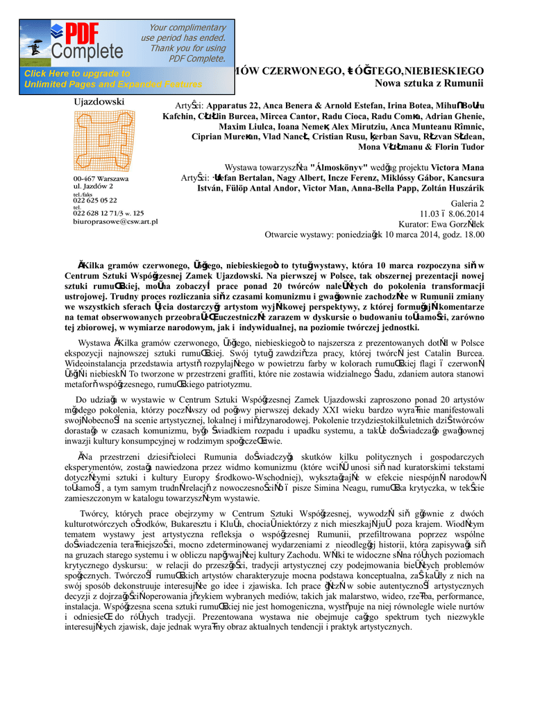 Nota prasowa, PDF - Centrum Sztuki Współczesnej Zamek