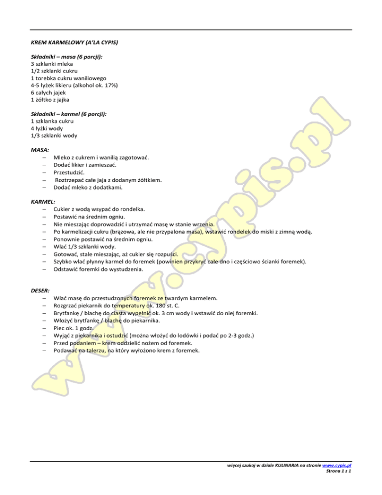 KREM KARMELOWY (A`LA CYPIS) Składniki – masa (6 porcji): 3