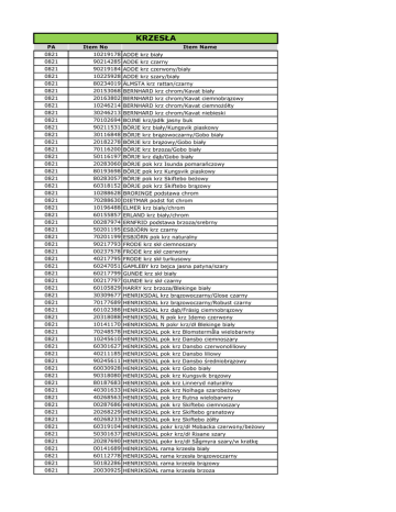 KRZESŁA PA 0821 0821 0821 0821 0821 0821 0821 0821 0821 0821 0821 0821 0821 0821 0821 0821 0821 0821 0821 0821 0821 0821 0821 0821 0821 0821 0821 0821 0821 0821 0821 0821 0821 0821 0821 0821 0821 0821 0821 0821 0821 0821 0821 0821 0821 0821 0821 0821 0821 0821 0821 0821 0821 0821 0821 0821 0821 0821 Item No 10219178 90214285 90219184 10225928 80234019 20153068 20163802 10246214 30246213 70102694 90211531 30116848 20182278 70116200 50116197 20283060 80193698 80283057 60318152 10288628 70288630 10196488 60155857 00287974 50201195 70201199 90217793 00237578 40217795 60247051 60217799 00217797 60105829 30309677 70177689 60102388 20318088 10141170 70248578 10245610 60301627 40211185 90245611 60030928 90318080 80187683 40301633 40268563 00287686 20268229 40268233 60319104 50301637 20287690 00141689 60112778 50182286 20030925 Item Name ADDE krz biały ADDE krz czarny ADDE krz czerwony/biały ADDE krz szary/biały ÄLMSTA krz rattan/czarny BERNHARD krz chrom/Kavat biały BERNHARD krz chrom/Kavat ciemnobrązowy BERNHARD krz chrom/Kavat ciemnożółty BERNHARD krz chrom/Kavat niebieski BOJNE krz/pdłk jasny buk BÖRJE krz biały/Kungsvik piaskowy BÖRJE krz brązowoczarny/Gobo biały BÖRJE krz brązowy/Gobo biały BÖRJE krz brzoza/Gobo biały BÖRJE krz dąb/Gobo biały BÖRJE pok krz Isunda pomarańczowy BÖRJE pok krz Kungsvik piaskowy BÖRJE pok krz Skiftebo beżowy BÖRJE pok krz Skiftebo brązowy BRORINGE podstawa chrom DIETMAR podst fot chrom ELMER krz biały/chrom ERLAND krz biały/chrom ERNFRID podstawa brzoza/srebrny ESBJÖRN krz czarny ESBJÖRN pok krz naturalny FRODE krz skł ciemnoszary FRODE krz skł czerwony FRODE krz skł turkusowy GAMLEBY krz bejca jasna patyna/szary GUNDE krz skł biały GUNDE krz skł czarny HARRY krz brzoza/Blekinge biały HENRIKSDAL krz brązowoczarny/Glose czarny HENRIKSDAL krz brązowoczarny/Robust czarny HENRIKSDAL krz dąb/Fräsig ciemnobrązowy HENRIKSDAL N pok krz Idemo czerwony HENRIKSDAL N pokr krz/dł Blekinge biały HENRIKSDAL pok krz Blomstermåla wielobarwny HENRIKSDAL pok krz Dansbo ciemnoszary HENRIKSDAL pok krz Dansbo czerwonoliliowy HENRIKSDAL pok krz Dansbo liliowy HENRIKSDAL pok krz Dansbo średniobrązowy HENRIKSDAL pok krz Gobo biały HENRIKSDAL pok krz Kungsvik brązowy HENRIKSDAL pok krz Linneryd naturalny HENRIKSDAL pok krz Nolhaga szarobeżowy HENRIKSDAL pok krz Rutna wielobarwny HENRIKSDAL pok krz Skiftebo ciemnoszary HENRIKSDAL pok krz Skiftebo granatowy HENRIKSDAL pok krz Skiftebo żółty HENRIKSDAL pokr krz/dł Mobacka czerwony/beżowy HENRIKSDAL pokr krz/dł Risane szary HENRIKSDAL pokr krz/dł Sågmyra szary/w kratkę HENRIKSDAL rama krzesła biały HENRIKSDAL rama krzesła brązowoczarny HENRIKSDAL rama krzesła brązowy HENRIKSDAL rama krzesła brzoza 0821 0821 0821 0821 0821 0821 0821 0821 0821 0821 0821 0821 0821 0821 0821 0821 0821 0821 0821 0821 0821 0821 0821 0821 0821 0821 0821 0821 0821 0821 0821 0821 0821 0821 0821 0821 0821 0821 0821 0821 0821 0821 0821 0821 0821 0821 0821 0821 0821 0821 0821 0821 0821 0821 0821 0821 0821 0821 0821 0821 0821 20054474 40228812 80225166 70206804 70103250 30125923 60217822 00217820 68156009 90263902 00246078 60246080 80280515 40280517 40044196 40182244 80182242 20102842 30288632 10291918 20259423 70264281 40290234 40290229 50240286 40230160 40242993 00281646 50076304 00211540 30131622 60293284 90131619 30115066 10115067 30246208 40059296 40275342 50185303 60177500 70177496 60201331 70177509 10177507 40203821 40240772 00255510 20255509 80201146 00252248 90305426 70297955 10297958 00211088 20246223 60246221 20256882 50291916 80222441 60222442 64833108 HENRIKSDAL rama krzesła dąb IDOLF krz biały IDOLF krz czarny IKEA PS 2012 krz/pdłk czarny INGOLF krz biały INGOLF krz brązowoczarny INGOLF N krz brązowoczarny INGOLF NN krz bejca patynowa IVAR krz sosna IVAR N krz sosna JANINGE krz biały JANINGE krz żółty JANINGE krz/pdłk biały JANINGE krz/pdłk szary KAUSTBY krz bejca patynowa KAUSTBY krz brązowoczarny KAUSTBY krz szarobrązowy KORPO krz/pdłk okl brzoz/srebrny LEIFARNE siedzisko biały LEIFARNE siedzisko jasnoniebieski LERHAMN krz bejca jasna patyna/Vittaryd beżowy LERHAMN krz czarnobrąz/Vittaryd beżowy LERHAMN pok krz Sågmyra różowy/w kratkę LERHAMN pok krz Sågmyra szary/w kratkę MARTIN rama krzesła srebrny MARTIN siedzisko czarny MELLTORP krz biały MELLTORP krz zielony NANDOR krz piaskowy/niklowano NILS Pokrycie na krze z oparciem Dillne szary/beż NILS Pokrycie na krzesło z oparciem Blekinge biały NILS Pokrycie na krzesło z oparciem Skiftebo csza NILS ram krz podłok czarny NISSE krz skł czarny NISSE krz skł połysk biały/chrom NISSE krz skł pomarańczowy NORDEN ławka 150 brzoza NORRÅKER krz biały brzoza NORRNÄS krz biały/Isunda szary NORRNÄS krz brzoza/Isunda szary NORRNÄS krz czarny/Isunda szary PREBEN krz brązowoczarny/Tenö jasnoszary REIDAR krz w/z biały REIDAR krz w/z czarny REIDAR krz w/z pomarańczowy REIDAR krz w/z żółty SEVED krz skł biały SEVED krz skł piaskowy SIGURD krz biały SIGURD krz czarny SKOGSTA krz akacja SKOGSTA stł bar 48x70 akacja SKOGSTA stolek 45 akacja STEFAN krz brązowoczarny STOCKHOLM krz orzech STOCKHOLM krz zielony STOCKHOLM podu krz Seglora ciemnobrązowy SVENBERTIL siedzisko brzoza TERJE krz skł biały TERJE krz skł brązowy TERJE krz skł buk 0821 0821 0821 0821 0821 0821 0821 0821 0821 0821 0821 0821 0821 0821 0821 0821 0822 0822 0822 0822 0822 0822 0822 0822 0822 0822 0822 0822 0822 0822 0822 0822 0822 0822 0822 0822 0822 0823 0823 0823 0823 0823 0823 0823 0823 0823 0823 0823 0823 0823 0823 0823 0823 0823 0823 0823 0823 0823 0823 0823 0823 00222440 40225677 40295514 50268765 20115038 90185320 80067789 20196713 10196718 50196716 30209036 40208753 70196715 30196717 90283052 90209038 90295743 24286205 10295742 30217833 00152282 00243923 00246196 90184047 10135659 10129955 30211609 30293290 20140127 00275344 20249330 80308393 00299321 60305786 10305779 00312515 50311957 00272656 80272657 70087212 60155602