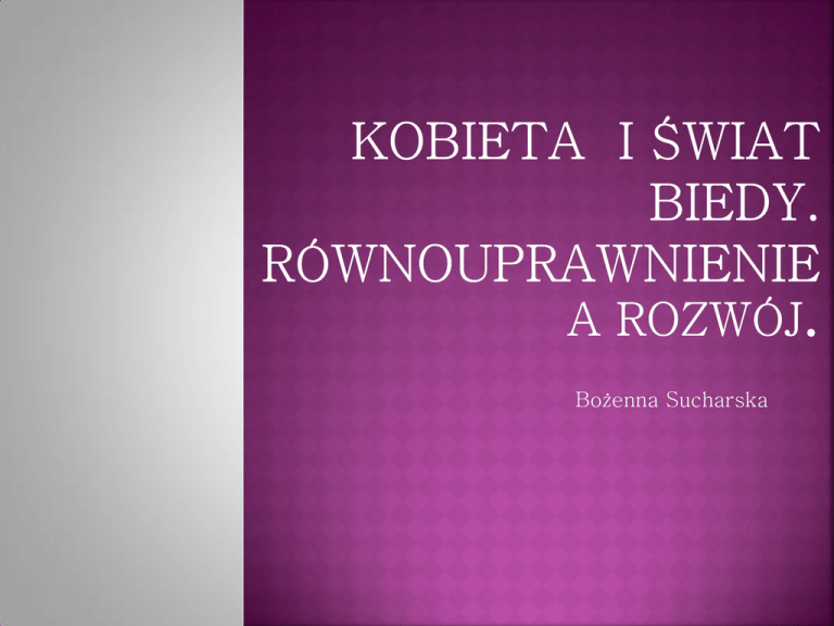 Bożenna Sucharska 1. Konwencja o prawach politycznych kobiet przyjęta 31 marca 1953 r. w Nowym Jorku. 2. Konwencja (NR 100) dotycząca jednakowego wynagrodzenia pracujących mężczyzn i kobiet za pracę jednakowej wartości przyjęta w Genewie dnia 29 czerwca 1951 r. (Dz. U. z dnia 27 września 1955 r.) 3. Konwencja (Nr 111) dotycząca dyskryminacji w zakresie zatrudnienia i wykonywania zawodu przyjęta w Genewie dnia 25 czerwca 1958 r. (Dz. U. z dnia 20 września 1961 r.) 4. Konwencja w sprawie likwidacji wszelkich form dyskryminacji kobiet, przyjęta przez Zgromadzenie Ogólne Narodów Zjednoczonych z dnia 18 grudnia 1979 r. (Dz. U. z dnia 2 kwietnia 1982 r.) 5. Protokół Fakultatywny do Konwencji w sprawie likwidacji wszelkich form dyskryminacji kobiet, przyjęty przez Zgromadzenie Ogólne Narodów Zjednoczonych dnia 6 października 1999 r. NAJWAŻNIEJSZE MIĘDZYNARODOWE REGULACJE PRAWNE O CHARAKTERZE TRAKTATOWYM DOTYCZĄCE PRAW KOBIET 1. Konwencja o Prawach Politycznych Kobiet z 31 marca 1953 r. i 2. Konwencja w sprawie Likwidacji Wszelkich Form Dyskryminacji Kobiet z 18 grudnia 1979 r. Obydwie zostały przyjęte przez Zgromadzenie Ogólne NZ. 3. Deklaracja o Eliminacji Przemocy Wobec Kobiet – deklaracja przyjęta przez Zgromadzenie Ogólne ONZ z 20 grudnia 1993 roku. 4. Konwencja o zapobieganiu i zwalczaniu przemocy wobec kobiet i przemocy domowej (Konwencja Stambulska) została wyłożona do podpisu w maju 2011r. Konwencja Stambulska została podpisana przez Prezydenta RP 16 marca 2015r. 1. każdy akt przemocy, związany z faktem przynależności danej osoby do określonej płci, którego rezultatem jest, lub może być, fizyczna, seksualna lub psychiczna krzywda lub cierpienie kobiet, włącznie z groźbą popełnienia takich czynów, wymuszaniem lub arbitralnym pozbawianie wolności, niezależnie od tego, czy czyny te miały miejsce w życiu publicznym czy prywatnym. 2. Przemoc wobec kobiet obejmuje, ale nie ogranicza się do: a/ fizycznej, seksualnej i psychicznej przemocy w rodzinie, włączając w to bicie, wykorzystywanie seksualne dziewcząt w domu rodzinnym, przemoc na tle konfliktu o wysokość posagu lub w celu uzyskania kolejnego posagu, gwałt w małżeństwie, okaleczanie narządów płciowych kobiet i inne tradycyjnie stosowane, okrutne praktyki, przemoc pozamałżeńską oraz przemoc związaną z wyzyskiem; b/ fizycznej, seksualnej i psychicznej przemocy występującej w danej społeczności, włączając w to gwałt, wykorzystywanie seksualne, molestowanie seksualne oraz wytwarzanie atmosfery zastraszenia w miejscu pracy, w instytucjach edukacyjnych i w innych miejscach oraz handel kobietami i zmuszanie do prostytucji. c/ fizycznej, seksualnej i psychicznej przemocy stosowanej lub tolerowanej przez państwo, niezależnie od tego, czy miała ona miejsce w życiu publicznym czy też prywatnym 1. 70 % kobiet przynajmniej raz w życiu pada ofiarą przemocy 2. przemoc wytwarza więcej biedy – blokuje rozwój ekonomiczny 3. każdego roku 25 listopada obchodzimy Światowy Dzień przeciwko Przemocy ze względu na Płeć (ONZ) 4. Problem przemocy ekonomicznej (łac. emancipatio dosł. wypuszczenie z rąk) wyzwolenie i obdarzenie kogoś pełnią praw; oswobodzenie, uwolnienie od dotychczasowych formuł relacji społecznych, zależności, dominacji; duchowe i intelektualne uniezależnienie się jednostek od dominujących schematów, formuł uzależniających postępowanie jednostki od określonych wymagań wobec niej. W starożytnym Rzymie możemy spotkać się z emancypacją rozumianą jako uwolnieniem syna spod władzy ojca. Od XIX wieku mamy do czynienia z emancypacją kobiet, czyli dążeniem do zrównania kobiet z mężczyznami w prawach społecznych i politycznych. 1.1975 r. – Międzynarodowy Rok Kobiet 2. 1975 – 1985 – Dekada na rzecz Kobiet ONZ 3.1979 r. – Konwencja o Eliminacji Wszelkich form Dyskryminacji Kobiet (CEDAW) działaczka feministyczna i ekologiczna, założycielka Partii Zielonych Kenii – Mazingira, laureatka Pokojowej Nagrody Nobla w 2004r. Pochodziła z plemienia Kikuju. prawniczka, działaczka na rzecz praw człowieka, nauczycielka akademicka i publicystka. prawniczka południowoafrykańska. Była pierwszą kobietą wykonującą zawód prawniczy w prowincji RPA Natal oraz pierwszą nie-białą kobietą w Sądzie Najwyższym. Jako adwokat wielokrotnie broniła przeciwników apartheidu. działaczka społeczna; od sierpnia 2001 do grudnia 2009 sekretarz generalna, Amnesty International Była pierwszą kobietą, pierwszą Azjatką i pierwszą muzułmanką na tym stanowisku. Jest kojarzona z promocją rozszerzenia działań Amnesty na rzecz praw kobiet oraz praw ekonomicznych, społecznych i kulturalnych. działaczka na rzecz praw kobiet, zwłaszcza ich prawa do nauki ; laureatka Pokojowej Nagrody Nobla 2014r. osja rosyjska pisarka, dziennikarka polityczna, feministka ginekolożka , założycielka i dyrektorka organizacji medica mondiale , której celem jest pomoc kobietom- ofiarom wojennych gwałtów. Celem organizacji jest także zapobieganie przemocy wobec kobiet i dążenie do ukarania jej sprawców. Laureatka nagrody Right Livehood pisarka, filozofka, feministka. Jedna z pionierek współczesnego feminizmu. Jej książka „Druga płeć” uważana jest za jedną z klasycznych prac feminizmu. feministka, pisarka , tłumaczka, publicystka pisarka, publicystka i dramatopisarka, posłanka do Krajowej Rady Narodowej oraz na Sejm Ustawodawczy i Sejm PRL; działaczka polskiego ruchu kobiecego dr hab. etyczka, filozofka, publicystka, feministka zajmuje się historią idei etycznych, etyką stosowaną, filozofią polityczną i feministyczną oraz problematyką kobiecą. polska pisarka, tłumaczka i publicystka związana z ruchem feministycznym. Członkini zespołu "Krytyki Politycznej" historyczka literatury i krytyczka literacka, dziennikarka telewizyjna i działaczka feministyczna. Wykładowczyni Gender Studies w Instytucie Bada ń Literacki