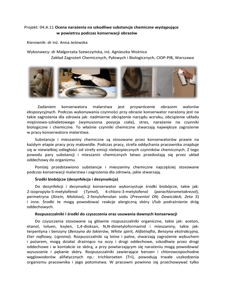 Projekt: 04.A.11 Ocena narażenia na szkodliwe substancje