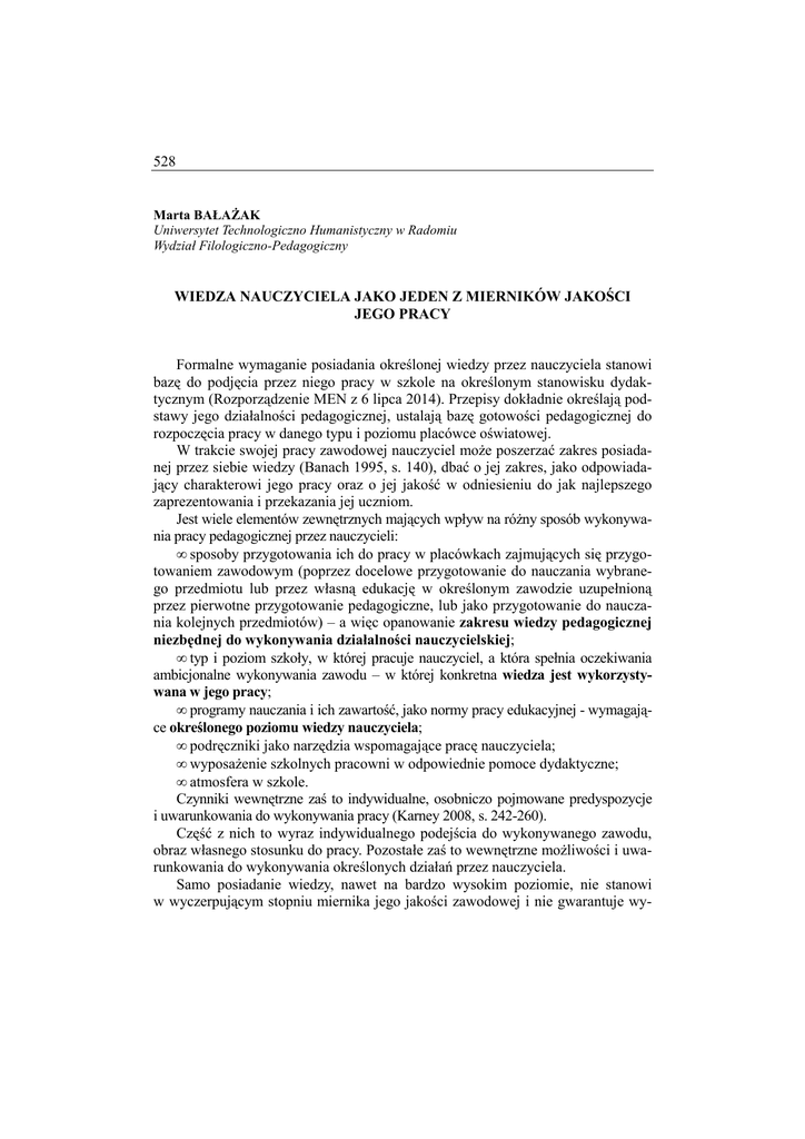 528 WIEDZA NAUCZYCIELA JAKO JEDEN Z MIERNIKÓW