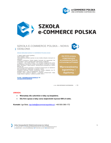 Izba Gospodarki Elektronicznej (e-Izba) 1 UWAGA: • Warsztaty dla