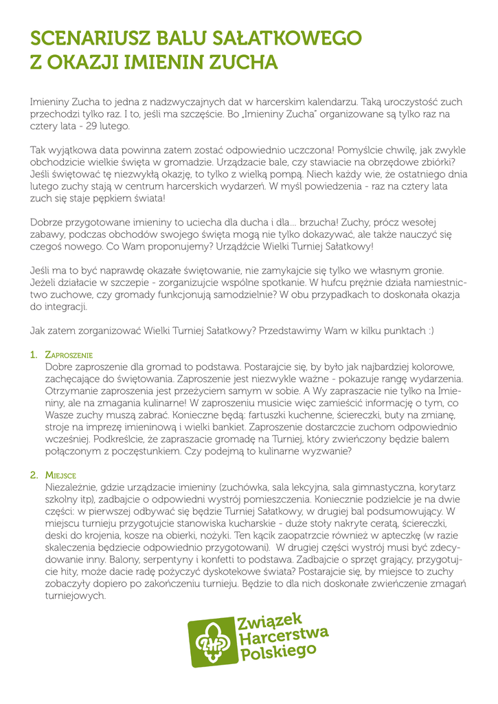 SCENARIUSZ BALU SAŁATKOWEGO Z OKAZJI IMIENIN ZUCHA