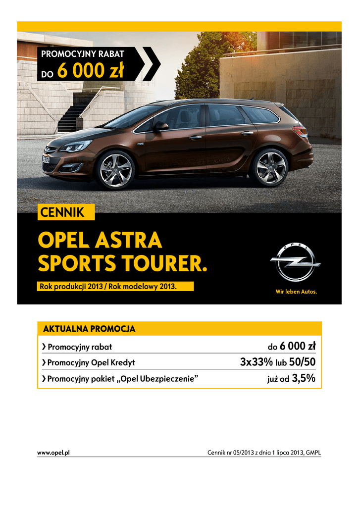 Opel Astra Sports Tourer cennik 2013 - Rok modelowy 2013