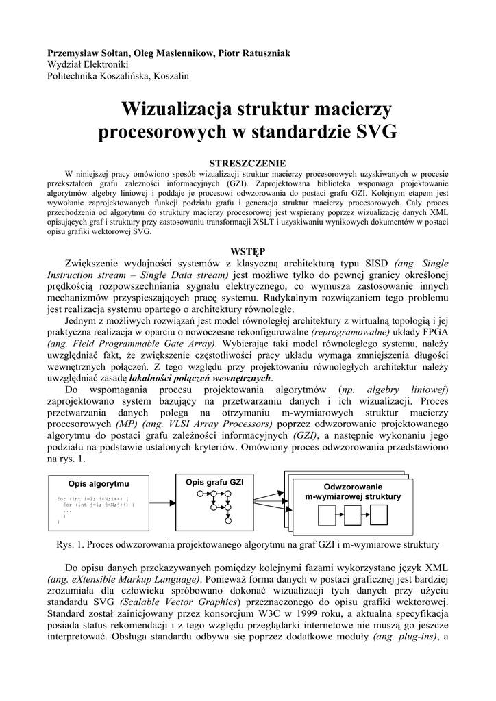 W niniejszej pracy omówiono sposób wizualizacji struktur macierzy procesorowych uzyskiwanych w procesie