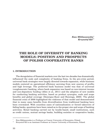 Ewa Miklaszewska* Krzysztof Kil** 7+(52/(2)',9(56,7<2)%$1.,1* 02'(/6326,7,21$1'35263(&76 2)b32/,6+&223(5$7,9(%$1.6 1. ,1752'8&7,21 7KHGHUHJXODWLRQRIILQDQFLDOPDUNHWVRYHUWKHODVWWZRGHFDGHVKDVGUDPDWLFDOO\ LQIOXHQFHG WKH VFDOH DQG FRPSOH[LW\ RI EDQNLQJ ILUPV ,Q WKH SUHFULVLV SHULRG XQLYHUVDOEDQNVWUDWHJLHVZHUHODUJHO\GLUHFWHGWRZDUGVH[SDQVLRQZKLOHEXVLQHVV models centered on operational efficiency accruing from new sources of profits DQG KLJK OHYHUDJH 7KH SUHIHUUHG EDQN EXVLQHVV PRGHO ZDV WKDW RI XQLYHUVDO FRQJORPHUDWHEDQNLQJZKHUHEDQNH[SDQVLRQZDVEDVHGRQQRQLQWHUHVWLQFRPH DQG QRQGHSRVLWRU\ IXQGLQJ $OOHQ HW DO DQG WKH DGRSWLRQ RI QHZ PRGHOV for conducting banking activities, based on product synergies, scale and scope EHQHILWV DQG JOREDO FRYHUDJH 'HPLUJXF.XQW DQG +XL]LQJD 7KH JOREDO ILQDQFLDOFULVLVRIKLJKOLJKWHGWKHULVNLQHVVRIWKDWPRGHODQGGHPRQVWUDWHG that in many cases benefits from diversification from traditional banking have EHHQ RYHUVWDWHG :LWK FRXQWOHVV FDVHV RI QDWLRQDOL]DWLRQ RU IRUFHG WDNHRYHUV RI failing banks, questions have been raised as to the proper size and scope of banking DFWLYLWLHV 5HWDLO EDQNLQJ FDUULHG RXW E\ ORFDOO\EDVHG VPDOO LQVWLWXWLRQV VXFK as credit unions, mutual savings banks, building societies or cooperative banks, * ** 50 (ZD0LNODV]HZVNDLVD3URIHVVRUDW&UDFRZ8QLYHUVLW\RI(FRQRPLFV3RODQG .U]\V]WRI.LOLVDQ$VVLVWDQW3URIHVVRUDW&UDFRZ8QLYHUVLW\RI(FRQRPLFV3RODQG Problems and Opinions for years has played an important role in local environments, enhancing bank UHSXWDWLRQ DQG WUXVW +RZHYHU SUHFULVLV GHUHJXODWLRQ DQG WKH JURZLQJ VL]H DQG FRPSOH[LW\RIEDQNLQJILUPVDQGSRVWFULVLVUHVWUXFWXULQJEDVHGRQPDVVLYHSXEOLF assistance aimed at stabilizing large banks, has created a hostile environment for locally based banks. 2. THE %$1.,1*6(&725,132/$1' 7+(326,7,212)&223(5$7,9(%$1.6 3RODQG KDV D UHODWLYHO\ ORZ FRQFHQWUDWHG EDQNLQJ VHFWRU ZLWK D WUDGLWLRQDO EDQN EXVLQHVV PRGHO )RUHLJQ FDSLWDO GRPLQDWHV EXW WKH 7UHDVXU\ LV DOVR DQ LPSRUWDQWVKDUHKROGHU3ROLVKSULYDWHFDSLWDOGRPLQDWHVLQVPDOOHUEDQNVDQGLQ the cooperative sector. 2YHUDOOWKH3ROLVKEDQNLQJVHFWRULQWKHSRVWFULVLVSHULRG is characterized by good performance as well as by solid fundamentals, as indicated LQ7DEOH Table 1. Polish bank performance (%) Sector 2013* 2012 2011 2010 2009 2013* &, 2012 2011 2010 2009 2013* ROE 2012 2011 2010 ROA 2009 Banks/ year 1.14 11.19 10.4 &RPPHUFLDO 1.10 1.17 10.19 11.19 49 49 &RRSHUDWLYH 1.19 70 'DWDIRU 6RXUFHRaport o sytuacji banków 2007–2011, 20128.1):DUV]DZDDQGInformacja RbV\WXDFMLEDQNöZZRNUHVLH,ļ,;U8.1):DUV]DZD 6LQFH 3ROLVK FRRSHUDWLYH EDQNV KDYH XQGHUJRQH FRPSUHKHQVLYH UHVWUXFWXULQJLQRUGHUWRDGDSWWRPDUNHWHFRQRP\UXOHVDQGODWHUWRDGMXVWWR(8 UHTXLUHPHQWV7KLVUHVWUXFWXULQJZDVSDLQIXOļtheir number has plummeted from LQ WR MXVW WRGD\ 6]DPEHODQF]\N 2Q WKH ZKROH KRZHYHU cooperative banks have benefited from the consolidation process and today serve RYHUPLOOLRQFXVWRPHUVWKURXJKDFRXQWU\ZLGHQHWZRUNRIEUDQFKHV6LQFH 3RODQGijV DFFHVVLRQ WR WKH (XURSHDQ 8QLRQ FRRSHUDWLYH EDQNV KDYH EHFRPH DQ LPSRUWDQWFKDQQHOWKURXJKZKLFKPRQH\IURPWKH&RPPRQ%XGJHWLVWUDQVIHUUHG WRIDUPHUVDQGORFDODXWKRULWLHVQDWLRQDOO\6LXGHN 7RGD\FRRSHUDWLYHEDQNV UHSUHVHQW RI WKH WRWDO QXPEHU RI EDQNV RI EDQN EUDQFKHV DQG RI HPSOR\PHQWEXWRQO\RIWRWDOEDQNLQJDVVHWVILJb 51 Bezpieczny Bank 2(55)/2014 )LJXUH&RRSHUDWLYHEDQNVijPDUNHWVKDUHLQWRWDODVVHWV 7.50 6.86 7.00 6.50 6.36 6.17 6.08 6.05 2010 2011 5.84 6.00 5.43 5.50 5.00 4.50 4.00 2007 2008 2009 2012 2013 6RXUFHRZQFDOFXODWLRQVEDVHGRQ.1)GDWD 7KH\ DUH VPDOO ORFDOO\ EDVHG LQVWLWXWLRQV WKH PDMRULW\ DURXQG EDQNV KDYH DVVHWV EHORZ b PLOOLRQ (XUR DQG RQO\ DUH UHODWLYHO\ ODUJH ZLWK DVVHWV DERYH PLOOLRQ (XUR 7KH FRRSHUDWLYH VHFWRU IROORZV Db WZROHYHO PRGHO DQG LQ WKHUHZHUHWZRFRRSHUDWLYHQHWZRUNVRQHKHDGHGE\%366$%DQN3ROVNLHM 6SöïG]LHOF]RĂFL 6$ ZLWK EDQNV DQRWKHU E\ 6*%%DQN 6SöïG]LHOF]D *UXSD %DQNRZDZLWKEDQNVDQGRQHFRRSHUDWLYHEDQNZKLFKRSHUDWHGLQGHSHQGHQWO\ .UDNRZVNL %DQN 6SöïG]LHOF]\) 7KH PLVVLRQ RI FRRSHUDWLYH EDQNV LV WR VXSSRUW WKHLUFXVWRPHUVDVZHOODVPHPEHUVRIORFDOFRPPXQLWLHVDVRSSRVHGWRWKHSURILW PD[LPL]LQJ REMHFWLYHV RI FRPPHUFLDO EDQNV DOWKRXJK WKHLU LQWHUHVW PDUJLQ LV KLJKHUWKDQWKDWRIFRPPHUFLDOEDQNVWDEb Table 2. Net interest margin (net interest revenues /av. assets) 2007 2008 2009 2010 2011 2012 2013 Sector &RPPHUFLDOEDQNV &RRSHUDWLYHEDQNV 4,77 4,11 6RXUFHRZQFDOFXODWLRQVEDVHGRQ.1)GDWD Among a number of locally active financial institutions, banking activities are FRQGXFWHGDOVRE\XQUHJXODWHGWLOOFUHGLWXQLRQV6.2.V$OWKRXJK6.2.V UHSUHVHQWRQO\RIWKHWRWDODVVHWVRIWKHEDQNLQJVHFWRU, they have grown at DbUHPDUNDEOHUDWHVLQFHWKHLULPSOHPHQWDWLRQLQ6.2.VRSHUDWHDPRQJORZ income individuals, especially those who do not have accounts with other banks. In WKHUHZHUH6.2.VZLWKEUDQFKHVVHUYLQJRYHUbPLOOLRQFXVWRPHUV RI3ROLVKKRXVHKROGV7KHLUDVVHWVLQ-XQHZHUHRYHUELOOLRQ86:% 7KH&UHGLW8QLRQ$FWRIGHILQHG6.2.VDVVHOIUHJXODWRU\RUJDQL]DWLRQV 52 Problems and Opinions ZKLFK JDYH WKHP IOH[LELOLW\ DQG ORZFRVW DGYDQWDJH 7KH QHZ &UHGLW 8QLRQ $FW RI LPSOHPHQWHG LQ 2FWREHU SURYLGHG IRU H[WHUQDO VXSHUYLVLRQ DQG depositor protection, similar to the rest of the regulated banking institutions, both FRPPHUFLDODQGFRRSHUDWLYH7KLVZDVDPRYHLQWKHULJKWGLUHFWLRQDVPDQ\VXUYH\V KDYHLQGLFDWHGWKDWPDQ\FXVWRPHUVGLGQRWGLIIHUHQWLDWHEHWZHHQVHOIUHJXODWHG 6.2.V DQG IXOO\ UHJXODWHG FRRSHUDWLYH DQG FRPPHUFLDO EDQNV .1)b E 3RODQGijVFRRSHUDWLYHEDQNVKDYHDOLPLWHGVFDOHDQGVFRSHRIRSHUDWLRQV$WWKH HQGRIORDQVFRQVWLWXWHGRIWKHLUDVVHWVWRKRXVHKROGVDQGPLFUR HQWHUSULVHV DQG WR ILUPV PRVWO\ 60(V IROORZHG E\ LQWHUEDQN ORDQV SODFHG LQ WKH DVVRFLDWLQJ EDQNV 7KH\ ILQDQFHG RI WKHLU DVVHWV E\ GHSRVLWV PRVWO\IURPKRXVHKROGV7KHFULVLVFKDQJHGWKHLUVWUDWHJLHVJLYLQJLQFHQWLYHVIRU PRYLQJLQWRPRUHULVN\VPDOOHQWHUSULVHILQDQFLQJWDEbWKHDUHDOHVVDWWUDFWLYH for commercial banks. 7DEOH&KDQJHVLQORDQVWUXFWXUHRIFRPPHUFLDODQGFRRSHUDWLYHEDQNV &RPPHUFLDOEDQNV &RRSHUDWLYHEDQNV 2008 2010 2011 2008 2010 2011 Households 74.7 Firms Local and central governments 4.9 2WKHUV 0.4 0.7 6RXUFH%)* )LJXUH&RRSHUDWLYHDQGFRPPHUFLDOEDQNVSURILWDELOLW\ ROA ROE 2.0% 25% 