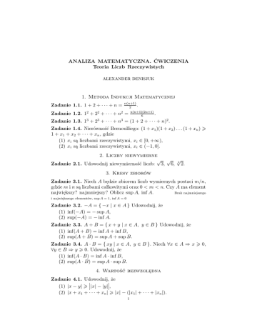 ANALIZA MATEMATYCZNA. ĆWICZENIA Teoria Liczb