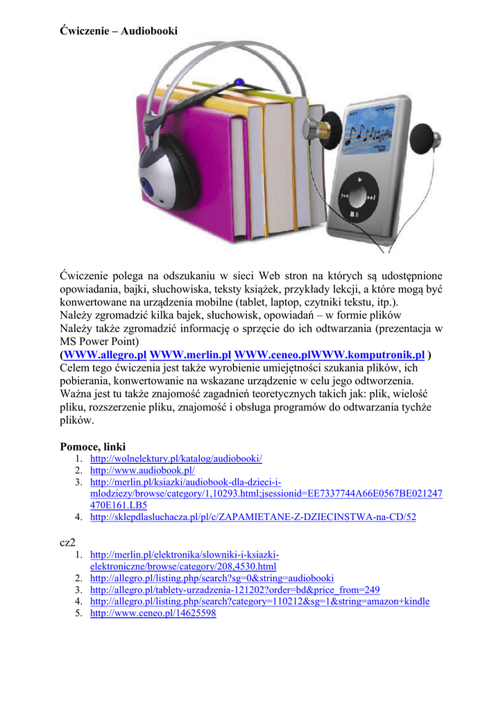 Ćwiczenie – Audiobooki Ćwiczenie polega na odszukaniu w sieci