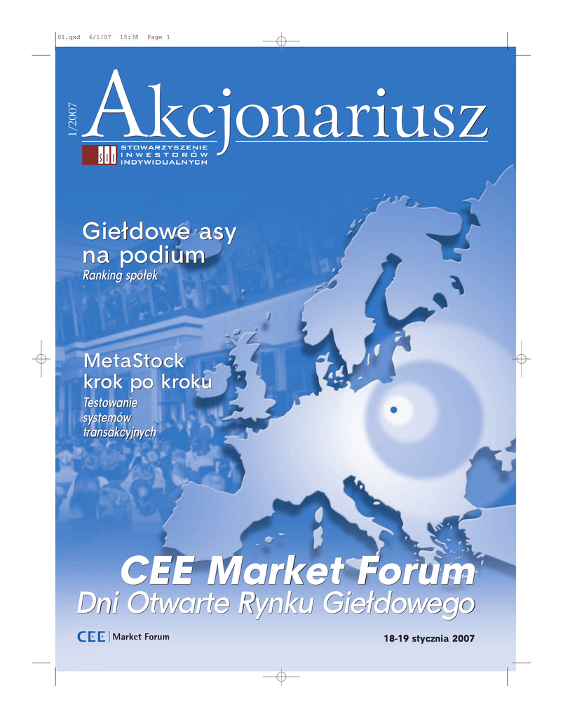 1/2007 01.qxd 6/1/07 15:38 Page 1 Akcjonariusz Giełdowe asy na podium Ranking spółek MetaStock krok po kroku Testowanie systemów transakcyjnych CEE Market Forum Dni Otwarte Rynku Giełdowego 18-19 stycznia 2007 0203 6/1/07 15:50 Page 2 0203 6/1/07 15:50 Page 3 OD REDAKCJI Spis TREŚCI Wydarzenia i aktualności Relacja z ATK . . . . . . . . . . . . . . . . . . . . . . . . . 4 CEE Market Forum 2007 . . . . . . . . . . . . . . . . 6 SII jako organizacja pożytku publicznego . . . 9 Aktualności SII . . . . . . . . . . . . . . . . . . . . . . . 10 Relacja z konferencji WallStreet 10 . . . . . . . 11 SII w Akcji ZEG - w poszukiwaniu wspólnego języka . . 15 Rankingi Podium - ranking spółek . . . . . . . . . . . . . . . 16 Drodzy czytelnicy Przedstawiamy Akcjonariusza w nowej odsłonie. Jego kształt to wynik zgłaszanych przez naszych Czytelników oczekiwań. Spółki giełdowe Wywiad z prezesem zarządu Alma Market Jerzym Mazgajem . . . . . . . . . 20 Edukacja Jarosław Augustynowicz, SII ■ [email protected] Analiza Techniczna (1) . . . . . . . . . . . . . . . . 21 Rankingi Analiza Fundamentalna (1) . . . . . . . . . . . . . 26 Na giełdzie zawsze szukamy najlepszych wśród spółek ale i wśród domów maklerskich. Najlepsze spółki to takie, które dotrzymują słowa i cieszą wynikami swoich udziałowców. Dlatego stworzyliśmy unikalny ranking wyników spółek giełdowych PODIUM. Wyniki trzeciego podsumowania zamieszczamy w Akcjonariuszu, zawsze aktualne kwartalne zestawienia są dostępne na internetowych stronach SII. Wybór biura maklerskiego bywa kwestią bardzo subiektywną. Równie subiektywne są oceny oferowanych przez domy maklerskie usług. Zapytaliśmy inwestorów w trakcie Ogólnopolskiego Badania Inwestorów Indywidualnych o oceny różnych elementów oferty brokerów. Te osobiste oceny pozwoliły na stworzenie rankingu domów maklerskich. Teraz już wiemy, z kogo jesteśmy najbardziej, a z kogo najmniej zadowoleni. Warto sprawdzić, czy korzystamy z najlepszej oferty. Zarządzanie kapitałem na rynku kontraktów terminowych . . . . . . . . . . . . . . . 30 Giełdowy temperament . . . . . . . . . . . . . . . 33 Testowanie systemów transakcyjnych . . . . . 36 Felieton Rynek nieruchomości mocno wpływa na całą gospodarkę . . . . . . . . . . . . . . . . . . 41 Edukacja Akcjonariusz Kwartalnik Stowarzyszenia Inwestorów Indywidualnych Redaktor naczelny: Jarosław Augustynowicz Zastępca redaktora naczelnego: Michał Masłowski Redakcja: ul. Komandorska 53a/8, 53-342 Wrocław tel. 071/783-76-85, fax 071/787-33-55 Reklama: Kamil Karpicki, tel. 0601 446 281 [email protected] internet: www.sii.org.pl e-mail: [email protected] Skład i opracowanie graficzne: Tomasz Baziuk Wszelkie prawa zastrzeżone. Powielanie wyłącznie za zgodą wydawcy. Redakcja nie zwraca tekstów nie zamówionych oraz zastrzega sobie prawo do ich skracania i redagowania. Redakcja nie ponosi odpowiedzialności za treść reklam. Dogłębnie i rzetelnie poszerzamy działy edukacyjne dla doświadczonych i początkujących graczy oraz inwestorów z rynków akcji i rynków instrumentów pochodnych. Rozpoczynamy cykl artykułów o analizie technicznej i fundamentalnej. Osoby korzystające z programu do analizy technicznej MetaStock zapoznają się z możliwościami narzędzi do budowania mechanicznych systemów transakcyjnych. Amatorzy kontraktów terminowych będą mieli okazję skonfrontować swój pomysł na zarządzanie kapitałem z metodami stosowanymi przez najsłynniejszych traderów świata. Wyrafinowani inwestorzy zobaczą na przykładzie ZEG-u, że inwestowanie wymaga i warte jest wyjścia poza monitor komputera z notowaniami. Na okrasę proponujemy wyniki badań polskich inwestorów dotyczącym psychologii inwestowania. Wydarzenia Nie zabraknie również relacji z wydarzeń organizowanych dla inwestorów przez SII, takich jak konferencja WallStreet czy IPO DAY – Dzień Debiutanta. Informujemy też o nadchodzących spotkaniach i szkoleniach kierowanych do inwestorów indywidualnych. Życzę przyjemnej lektury (1)2007 Akcjonariusz 3 0405 6/1/07 15:59 Page 2 WYDARZENIA Akademia Tworzenia Kapitału dla zaawansowanych Jakie zyski dają waluty, towary i akcje W dniach od 30 września wiedzę o alternatywnych do GPW możlido 3 listopada 2006 r., wościach inwestycji dostępnych w polprzez 5 kolejnych weekskich warunkach rynkowych. W szczególendów, w 5 miastach ności została omówiona tematyka inwew Polsce (Wrocław, stycji w waluty, surowce oraz ogólnie w Gdańsk, Kraków, Poznań, Warszawa), odkontrakty terminowe notowane na świabyła się kolejna edycja Akademii Tworzetowych rynkach. Skupiono się na instrunia Kapitału (ATK). mentach dostępnych dla przeciętnego Tematem poprzednich edycji ATK były polskiego inwestora. podstawy funkcjonowania rynku kapitaW wykładach, w każdym z miast, uczestłowego w Polsce. Dominowała analiza niczyło średnio ponad 100 osób. Ogromtechniczna i fundamentalna, ne zainteresowanie taką forujęta w sposób możliwie promą przekazywania wiedzy sty. Omówiono także podstaspowodowało, że już dzisiaj W wykładach, wowe rodzaje instrumentów możemy Państwu obiecać, iż w każdym z miast, zostanie zorganizowana kolejfinansowych notowanych na Giełdzie Papierów Wartościona edycja Akademii Tworzeuczestniczyło wych w Warszawie. Tym rania Kapitału na wiosnę 2007 zem Stowarzyszenie Inwestoroku. Jednocześnie informujeponad 100 osób rów Indywidualnych we my, iż kontynuowana będzie współpracy z Domem Maklerformuła spotkań skierowanych skim X-Trade Brokers zorganizowało cykl zarówno do początkujących inwestorów, jak i do tych bardziej zaawansowanych. wykładów, które można nazwać „ATK dla Wszelkie szczegóły będą na bieżąco publizaawansowanych”. kowane internetowej witrynie StowarzyszeTematyka wykładu została podzielona nia Inwestorów Indywidualnych: www.sii.org.pl na trzy główne bloki: ● Nieregulowany rynek instrumen