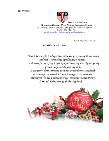 komunikat 2016 - Kolegium Sedziów Podokręgu Rybnik