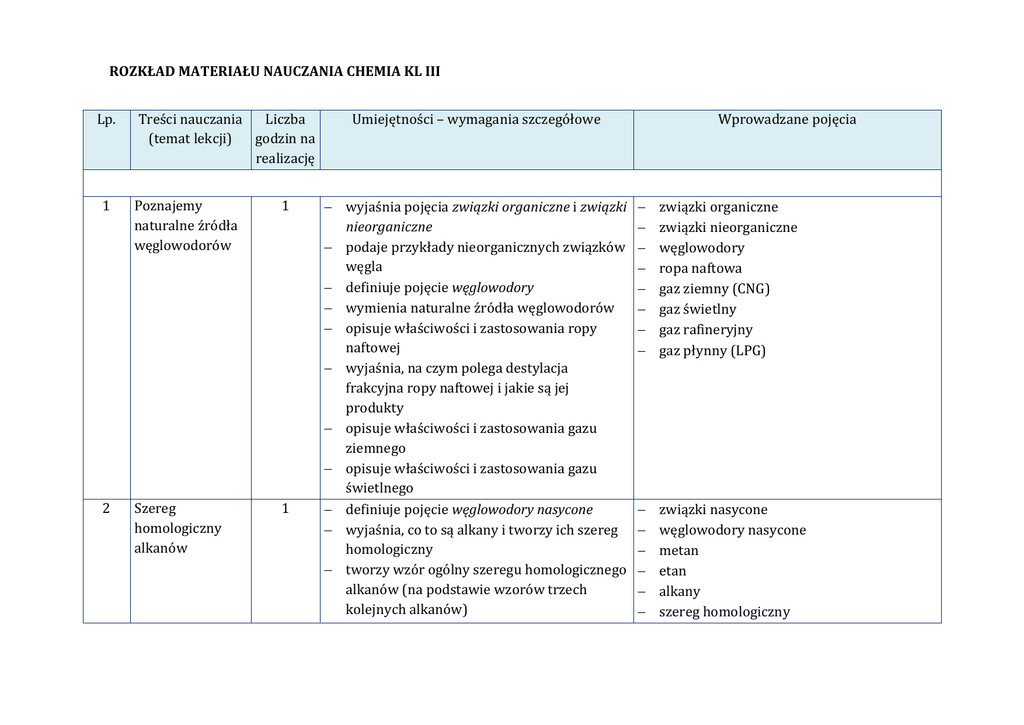 ROZKŁAD MATERIAŁU CHEMIA KL III