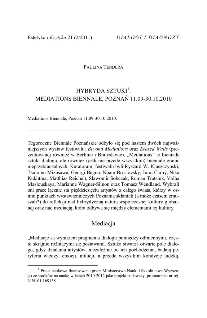 Paulina Tendera Hybryda sztuki. Mediations Biennale, Poznań