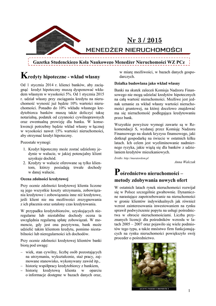 Gazetka Studenckiego Koła Naukowego Menedżer Nieruchomości