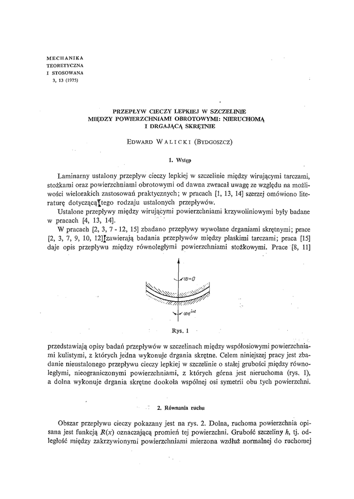 13. E . WALIC KI, Przepł yw cieczy lepkiej w szczelinie mię dzy