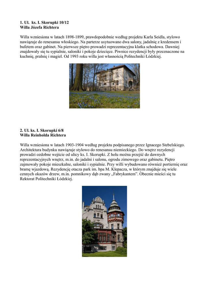 1. Ul. ks. I. Skorupki 10/12 Willa Józefa Richtera Willa