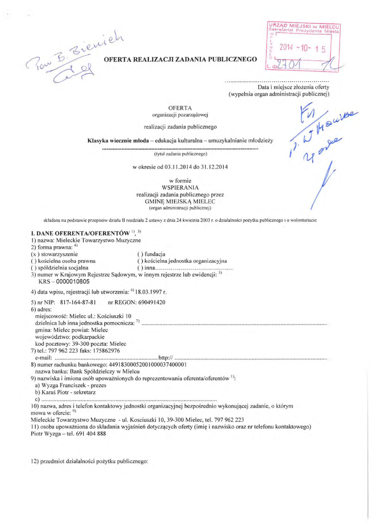 I) nazwa: Mieleckie Towarzystwo Muzyczne