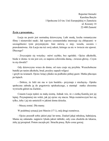 Reportaż literacki Karolina Buryło I Społeczne LO im. Unii