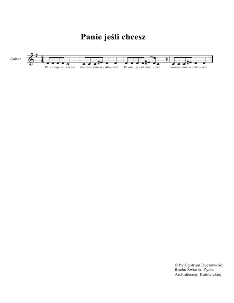 Panie jeśli chcesz Guitar # 4 & 4œœœœ ˙ Pa - nie-je- śli chcesz œ œ œ #œ œ œ mo- żesz mnie u - zdro - wić. œ œ œ œ #œ œ œ Pa -nie je - śli chce - esz ≈ œ œ œ #œ œ œ mo-zesz mnie u - zdro - wić © by Centrum Duchowości Ruchu Światło- Życie Archidiecezji Katowickiej