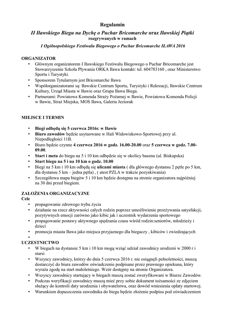 Regulamin II Iławskiego Biegu na Dychę o Puchar