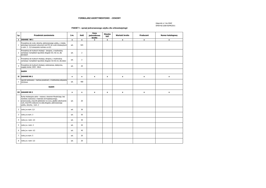 FORMULARZ ASORTYMENTOWO - CENOWY PAKIET I
