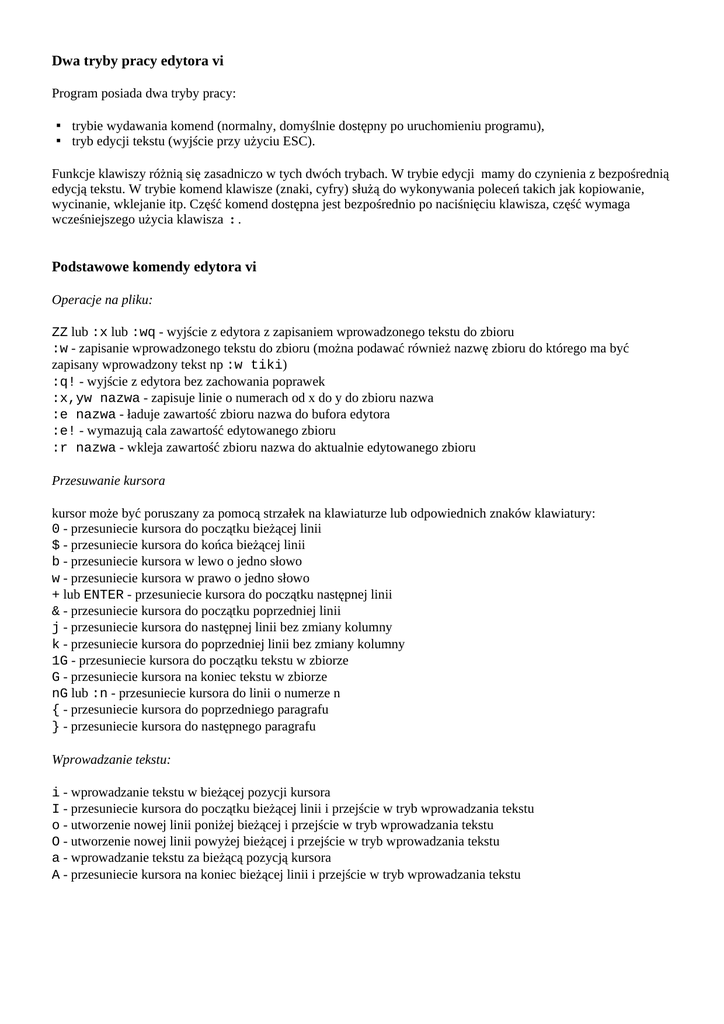 Podstawowe komendy edytora vi