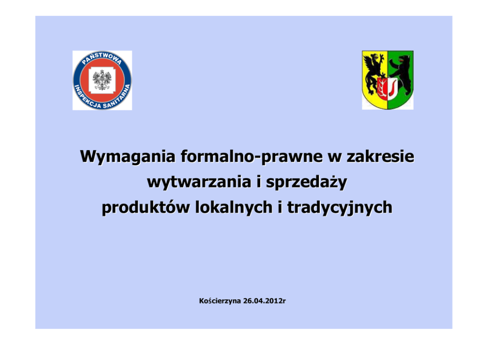Wymagania formalno-prawne w zakresie wytwarzania i sprzedaży produktów lokalnych i tradycyjnych Koś ścierzyna 26.04.2012r Wymagania techniczne pomieszczeń dla przetwórstwa produktów pochodzenia roślinnego W prawie żywnościowym bezpieczeństwo żywności to cel podstawowy osiągany m. in. poprzez: - odpowiedzialność producentów i dostawców, - możliwość śledzenia pochodzenia (identyfikowalność), - wdrożenie prawa do praktyki, - otwartość i przejrzystość działania, - prawne bezpieczeństwo. Rozporządzenie (WE) Nr 852/2004 Parlamentu Europejskiego i Rady z dnia 29 kwietnia 2004 r. w sprawie higieny środków spożywczych Rozporządzenie (WE) Nr 852/2004 dotyczy całej żywności, wdraża zasadę „from stable to table”, wprowadza odpowiedzialność przedsiębiorców, ma zastosowanie do przedsiębiorstw sektora spożywczego oraz do wszystkich etapów produkcji, przetwarzania i dystrybucji żywności, a także wywozu. Rozporządzenie (WE) Nr 852/2004 Zasady ogólne odpowiedzialność za bezpieczeństwo żywności ponosi przedsiębiorca sektora spożywczego w zakresie prowadzonej działalności, bezpieczeństwo żywności musi być zapewnione w ramach całego łańcucha produkcji żywności, począwszy od produkcji podstawowej (transport,składowanie i przetwarzanie w miejscu produkcji) , Rozporządzenie (WE) Nr 852/2004 Zasady ogólne na wszystkich etapach produkcji, przetwarzania i dystrybucji żywności należy zapewnić spełnienie wymagań ustanowionych w rozporządzeniu, wytyczne do dobrej praktyki higienicznej powinny być traktowane jako ważny instrument przy produkcji żywności w zakresie zachowania zgodności z zasadami higieny żywności oraz stosowaniem odpowiedniej systemu, zasad elastyczności HACCP w przy podejściu zapewnieniu do wymogów Dobra Praktyka Higieniczna obejmuje: • lokalizację, otoczenie zakładu i infrastrukturę zakładu • obiekty zakładu i ich układ funkcjonalny • maszyny i urządzenia • • procesy mycia i dezynfekcji zaopatrzenie w wodę • kontrolę odpadów • zabezpieczenie przed szkodnikami i kontrolę w tym zakresie • • szkolenie personelu higienę personelu • prowadzenie dokumentacji i zapisów z zakresu GHP Dobra Praktyka Produkcyjna obejmuje: • przyjęcie surowców i materiałów • magazynowanie i postępowanie z surowcami • procesy obróbki wstępnej • procesy obróbki zasadniczej • transport wewnętrzny • magazynowanie wyrobów gotowych • transport zewnętrzny i dystrybucja Rozporządzenie (WE) Nr 852/2004 przedsiębiorca a nadzór zgłoszenie przedsiębiorstwa właściwemu organowi w celu rejestracji lub zatwierdzenia, poddawanie się kontrolom urzędowym przeprowadzanym przez właściwy organ na podstawie prawa wspólnotowego lub krajowego. Rozporządzenie (WE) Nr 852/2004 Załącznik I – dotyczy przepisów obowiązujących przy prowadzeniu produkcji podstawowej i działań powiązanych. Określa również zalecenia do wytycznych dobrej praktyki higienicznej (transport, składowanie, przetwarzanie surowców w miejscu produkcji, pod warunkiem że nie zmienia to znacznie ich charakteru) PRODUKCJA PODSTAWOWA Przedsiębiorstwa sektora spożywczego produkujące lub zbierające produkty roślinne winne: 1) utrzymywać w czystości, dezynfekować we właściwy sposób- obiekty, wyposażenia, pojemniki, skrzynie, pojazdy, itp. 2) zapewnić higieniczne warunki produkcji, transportu i składowania, oraz czystości, produktów roślinnych, 3) używania wody przeznaczonej do spożycia, 4) personel przetwarzający jest dobrego zdrowia i posiada szkolenie na temat ryzyka zdrowotnego, 5) zabezpieczyć produkty przed zanieczyszczeniem przez zwierzęta i szkodniki, 6) stosować środki ochrony roślin zgodnie z odrębnymi przepisami, 7) uwzględniać wyniki wszelkich analiz przeprowadzonych na próbkach roślin, 8) prowadzić dokumentację w zakresie użycia środków ochrony roślin, występowania szkodników lub chorób, wyników wszelkich analiz przeprowadzonych na próbkach pobranych od roślin. Rozporządzenie (WE) Nr 852/2004 Załącznik II – określa wymogi higieny dla wszystkich przedsiębiorstw sektora spożywczego, m.in.: - ogólne wymagania dotyczące pomieszczeń żywnościowych, - szczególne wymagania dla pomieszczeń, w których się przygotowuje, poddaje obróbce lub przetwarza środki spożywcze, - wymagania dotyczące ruchomych lub tymczasowych pomieszczeń, pomieszczeń używanych jako prywatne domy mieszkalne, ale gdzie regularnie przygotowuje się w celu wprowadzania do obrotu, - wymagania dla sprzętu. OGÓLNE WYMAGANIA DOTYCZĄCE POMIESZCZEŃ ŻYWNOŚCIOWYCH 1) pomieszczenia utrzymane w czystości i dobrym stanie technicznym, 2) wyposażenie, wystrój, konstrukcja, rozmieszczenie i wielkość pomieszczeń żywnościowych pozwala na odpowiednie utrzymanie czystości i dezynfekcję, chroni przed gromadzeniem się brudu i kontaktem z materiałami toksycznymi, ochronę przed szkodnikami, zapewnia warunki przetwarzania i składowania w odpowiednich warunkach termicznych środków spożywczych, 3) dostępna odpowiednia ilość ubikacji podłączonych do sprawnego systemu kanalizacyjnego. Ubikacje nie mogą łączyć się z pomieszczeniami, w których pracuje się z żywnością. 4) w każdym pomieszczeniu produkcyjnym i zapleczu sanitarnym umywalka do mycia rąk z ciepłą i zimną wodą oraz z odpowiednim wyposażeniem( mydło w płynie, ręczniki jednorazowe), oddzielone od stanowisk do mycia żywności, 5) muszą istnieć wystarczające systemy wentylacji grawitacyjnej i mechanicznej, 6) pomieszczenia żywnościowe muszą posiadać odpowiednie oświetlenie naturalne i/lub sztuczne, 7) sprawne urządzenia kanalizacyjne, 8) zapewnione warunki przebierania się przez personel , 9) zapewnione warunki przechowywania środków czystości i środków dezynfekujących( poza pomieszczeniami gdzie pracuje się z żywnością) SZCZEGÓLNE WYMAGANIA DLA POMIESZCZEŃ, W KTÓRYCH PRZYGOTOWUJE 