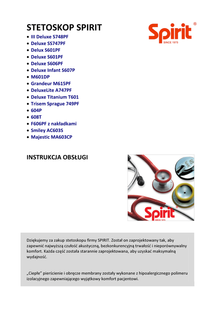 Instrukcja obslugi stetoskopow SPIRIT.