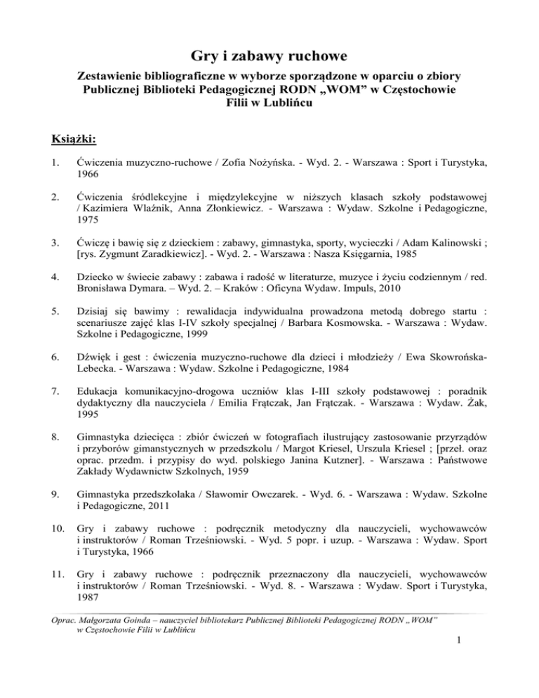 gry i zabawy ruchowe - Publiczna Biblioteka Pedagogiczna RODN