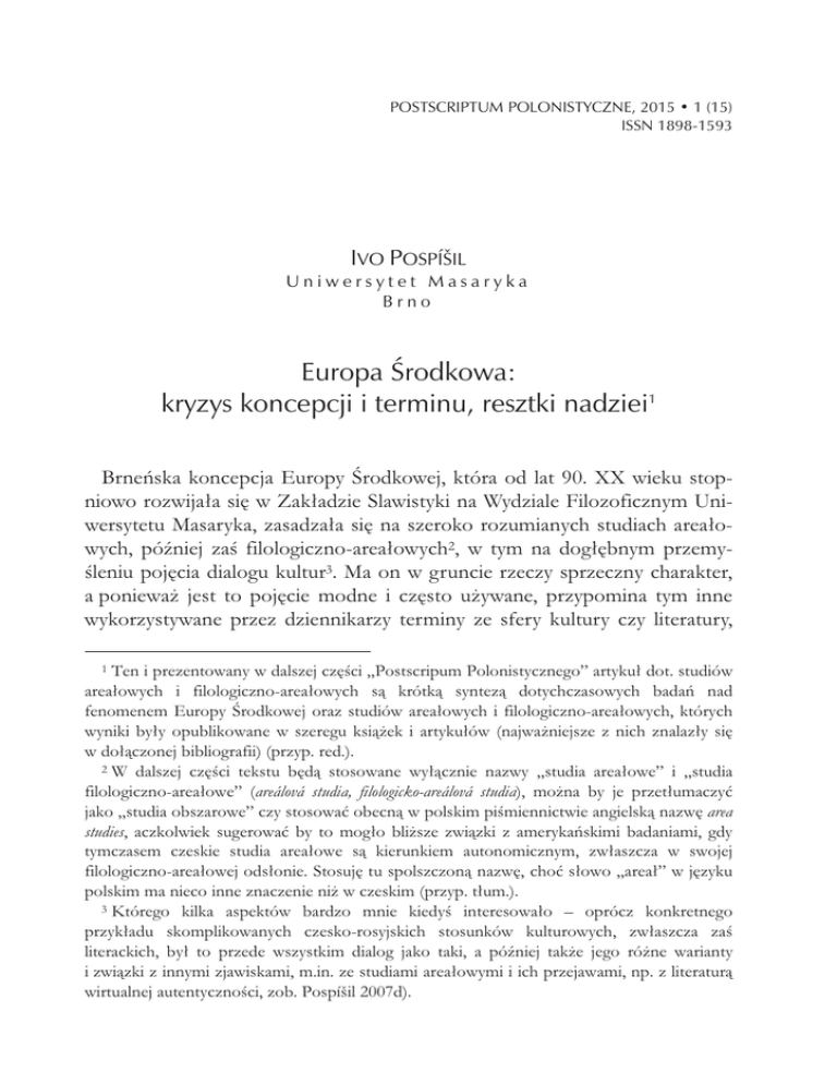 POSTSCRIPTUM POLONISTYCZNE, 2015 • 1 (15) ISSN 1898-1593 IVO POSPÍŠIL Uniwersytet Masaryka Brno Europa rodkowa: kryzys koncepcji i terminu, resztki nadziei1 Brne ska koncepcja Europy !rodkowej, która od lat 90. XX wieku stopniowo rozwija"a si# w Zak"adzie Slawistyki na Wydziale Filozoficznym Uniwersytetu Masaryka, zasadza"a si# na szeroko rozumianych studiach area"owych, pó$niej za% filologiczno-area"owych2, w tym na dog"#bnym przemy%leniu poj#cia dialogu kultur3. Ma on w gruncie rzeczy sprzeczny charakter, a poniewa& jest to poj#cie modne i cz#sto u&ywane, przypomina tym inne wykorzystywane przez dziennikarzy terminy ze sfery kultury czy literatury, 1 Ten i prezentowany w dalszej cz#%ci „Postscripum Polonistycznego” artyku" dot. studiów area"owych i filologiczno-area"owych s' krótk' syntez' dotychczasowych bada nad fenomenem Europy !rodkowej oraz studiów area"owych i filologiczno-area"owych, których wyniki by"y opublikowane w szeregu ksi'&ek i artyku"ów (najwa&niejsze z nich znalaz"y si# w do"'czonej bibliografii) (przyp. red.). 2 W dalszej cz#%ci tekstu b#d' stosowane wy"'cznie nazwy „studia area"owe” i „studia filologiczno-area"owe” (areálová studia, filologicko-areálová studia), mo&na by je przet"umaczy( jako „studia obszarowe” czy stosowa( obecn' w polskim pi%miennictwie angielsk' nazw# area studies, aczkolwiek sugerowa( by to mog"o bli&sze zwi'zki z ameryka skimi badaniami, gdy tymczasem czeskie studia area"owe s' kierunkiem autonomicznym, zw"aszcza w swojej filologiczno-area"owej ods"onie. Stosuj# tu spolszczon' nazw#, cho( s"owo „area"” w j#zyku polskim ma nieco inne znaczenie ni& w czeskim (przyp. t"um.). 3 Którego kilka aspektów bardzo mnie kiedy% interesowa"o – oprócz konkretnego przyk"adu skomplikowanych czesko-rosyjskich stosunków kulturowych, zw"aszcza za% literackich, by" to przede wszystkim dialog jako taki, a pó$niej tak&e jego ró&ne warianty i zwi'zki z innymi zjawiskami, m.in. ze studiami area"owymi i ich przejawami, np. z literatur' wirtualnej autentyczno%ci, zob. Pospíšil 2007d). 82 POSTSCRIPTUM POLONISTYCZNE, 2015 • 1 (15) jak np. „realizm magiczny”, lub te z zakresu polityki czy raczej politologii, których znaczenie w swoim czasie znacznie si# rozmy"o. Dialog na pozór funkcjonuje jako sposób komunikacji, ale pe"ni te& donios"' rol# jako medium strategii ludzkiego zachowania i dzia"ania, jako %rodek do osi'gni#cia celu. Przyj#"o si#, &e dialog jest pozytywnym narz#dziem ludzkiego porozumiewania si#, &e prowadzi do erozji niezdrowego izolacjonizmu. Je%li dialog w takim rozumieniu uwalnia napi#cie, to jednak w funkcji instrumentalnej jest przede wszystkim %rodkiem starcia pogl'dów, które prowadzi w ko cu do przeforsowania jakiej% ich wersji i do zaistnienia sytuacji, jakiej przed dialogiem nie by"o. Jest wi#c dialog w swoim instrumentalnym kszta"cie przede wszystkim narz#dziem zmiany – zmiany relacji mi#dzy uczestnikami dialogu, zmiany wewn#trznej, a wi#c ich sposobu my%lenia, ale te& zmiany zewn#trznej, w ich sytuacji egzystencjalnej. Dialog ma zatem w sobie potencja" nie tylko pokojowej wymiany zda , ale tak&e broni, narz#dzia walki. Mo&na by rzec, &e dzieje ludzko%ci s' z tego punktu widzenia nieko cz'cym si# dialogiem jednostek, spo"eczno%ci i spo"ecze stw, cywilizacji i kultur, dialog zatem – w szerokim rozumieniu tego s"owa, jako konfrontacja – by" g"ównym nap#dem wszystkich zmian historycznych, a jego specyfika zak"ada, &e b#d' w nim zwyci#zcy i przegrani (zob. Pospíšil 2002b, 2005b, 2007a, 2007b; Richterek 2003). Niemniej jednak wydaje si#, &e dialog kultur ma najwi#ksze znaczenie dla my%lenia o komparatystycznie rozumianej historii literatury, a przede wszystkim teorii procesów historycznoliterackich (Wellek 1936; Dolinar, Juvan 2006; Pospíšil 2005a, 2005c, 2007b, 2007c, 2008a, 2008b). Globalizacja przejawia si# obecnie tak&e jako ch#( polityzacji literaturoznawstwa. Ma to tutaj jednak swoje powody: cz#sto pogl'dy literaturoznawców s' po%rednim rezultatem sytuacji politycznej i ogólnospo"ecznej, a wyprowadzanie literatury i literaturoznawstwa z szerszych kontekstów w gruncie rzeczy odpowiada zasadom nowocze%nie rozumianych studiów area"owych (zob. m.in. Pospíšil 2002b; Moser, Pospíšil 2004; Pospíšil, Zelenka 2003, 2004; Moser, Newerkla) i zwi'zane jest z demityzacj' niektórych faktów. Mo&na to zobaczy( np. w ksi'&ce ciesz'cej si# na pocz'tku nowego tysi'clecia zas"u&onym zainteresowaniem, której autorem jest Galin Tihanov, profesor literatury porównawczej na uniwersytecie w Lancasterze (Pospíšil 2006b). Tak&e kilkutomowa publikacja Johna Neubauera i Marcela Cornisa-Pope’a History of the Literary Cultures of East-Central Europe: Junctures and Disjunctures in the 19th and 20th Centuries (Cornis-Pope, Neubauer 2010) budzi szereg afirmacji, ale te& pyta i problemów, które prowadz' do powrotu ku w"a%ci- IVO POSPÍŠIL: Europa rodkowa: kryzys koncepcji i terminu, resztki nadziei 83 wemu celowi komparatystyki literackiej jako suwerennej dyscypliny area"owej. Je%li uznamy, &e poetologiczne warto%ci nie znaj' lub nie powinny zna( granic ani tzw. pozytywnej dyskryminacji lub &e czytelnicy oceniaj' efekt estetyczny i inne komponenty oraz funkcje artefaktu literackiego, nie musz' si# za% interesowa( historyczno-polityczno-kulturowymi powodami powstania danego dzie"a, musimy tym samym odrzuci( d'&enie do warto%ciowania procesu literackiego, tj. przedstawianie jakiego% jednego modelu jako wzorcowego, godnego na%ladowania. Tak&e u&ywane przez badaczy poj#cie belatedness, czyli jakie% „opó$nienie” czy „zacofanie”, b#dzie terminem pejoratywnie aksjologicznym, a wi#c faktycznie dyskryminuj'cym. Ka&da literatura narodowa ma swój paradygmat rozwoju, a co za tym idzie – &adna literatura nie musi innej „dogania(” czy „wyprzedza(”, poniewa& jest we w"asnym rozwoju autonomiczna i mo&e z innymi bytami wzajemnie oddzia"ywa(, mo&e je na%ladowa(, transformowa( ich inspiracje, ale 