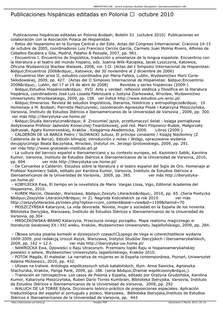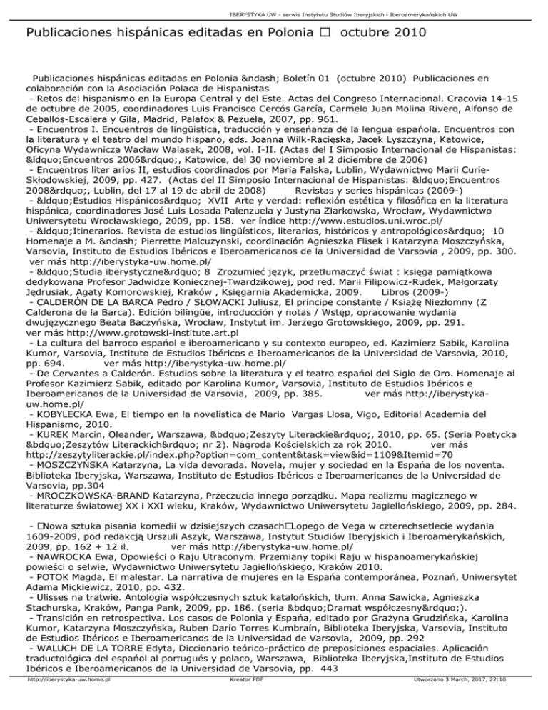 Publicaciones hispánicas editadas en Polonia octubre 2010