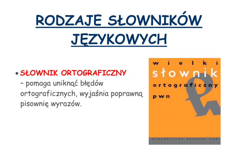 RODZAJE SŁOWNIKÓW JĘZYKOWYCH