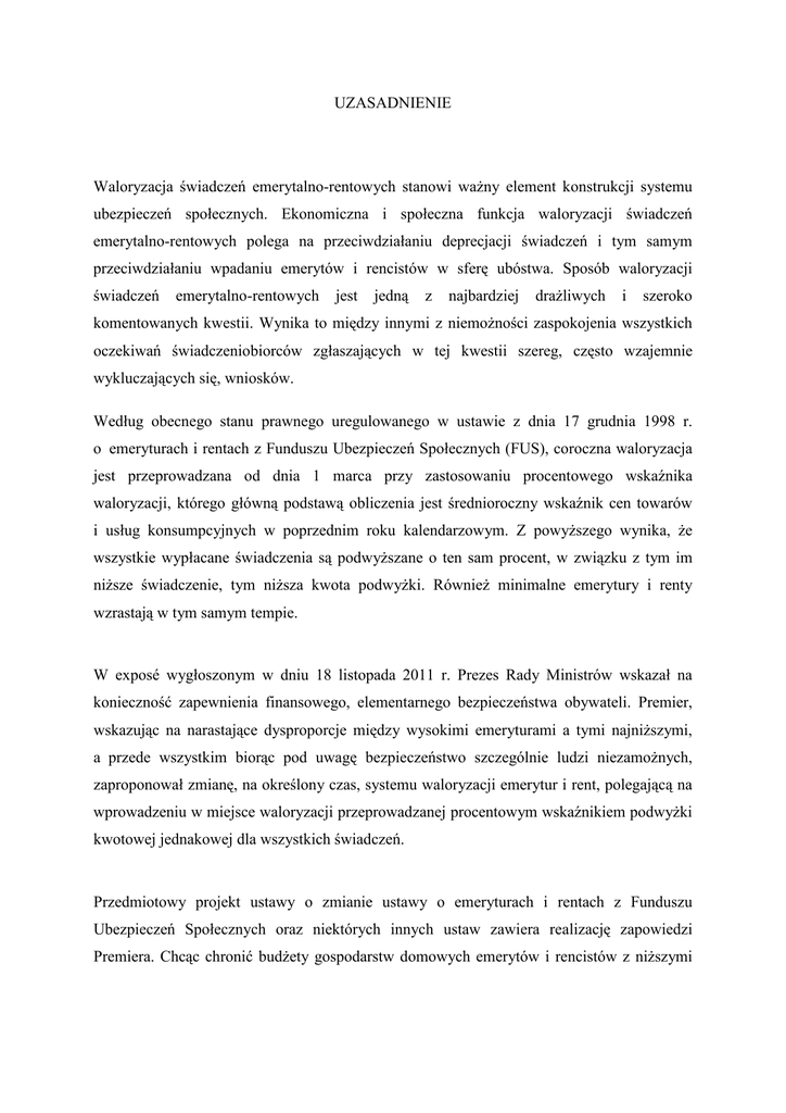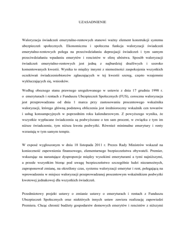 Uzasadnienie zmian w ustawie o emeryturach i rentach