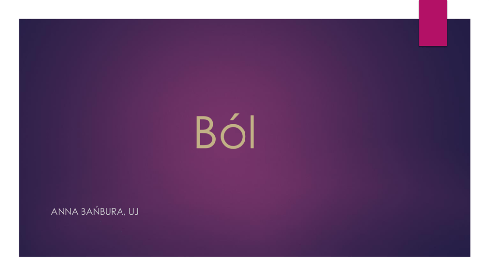 Ból ANNA BAŃBURA, UJ CZY BÓL JEST DO CZEGOŚ POTRZEBNY? Isaac Brown Funkcje bólu wg Dobrogowskiego Ból przewlekły • trwa ponad 3 miesiące • różne jednostki chorobowe • nie zawsze znana etiologia, a samo wygojenie się tkanek często nie powoduje jego zaniku •po zaniku pierwotnej przyczyny sam w sobie staje się chorobą DEPRESJA A BÓL PRZEWLEKŁY Czy istnieje sposób leczenia bólu przewlekłego? Stres a ból przewlekły Strategie radzenia sobie: • Zadaniowa • Skoncentrowana na emocjach (Lazarus i Folkman) Super człowiek https://www.youtube.com/watch?v=Swr8zpuXbMg Iceman https://www.youtube.com/watch?v=L9Cgaa8U4eY Autonomiczny układ nerwowy wizualizacje wizualizacja bólu Po zamknięciu oczu i wprowadzeniu się w stan relaksu spróbuj wyobrazić sobie swój własny ból. Jak on wygląda, jaki ma kolor, rozmiar? Czy wydaje jakieś dźwięki? Gdzie dokładnie jest umiejscowiony? Wyobraź go sobie tak szczegółowo, jak tylko potrafisz. Gdy już będziesz mieć przed oczyma gotową wizję swojego bólu zacznij powoli w wyobraźni przekształcać ją w taki sposób, aby stała się czymś przyjemnym. Jeśli twój ból ma ostry czerwony kolor spróbuj złagodzić go nadając mu barwy pastelowe, błękitne czy bladozielone. Jeśli ma kanciaste, nieprzyjemne kształty spróbuj wyobrazić sobie, że staje się miękki i miły w dotyku. Manipuluj wizją swojego bólu tak długo aż poczujesz, że nie wywołuje on już w tobie negatywnych emocji, a wręcz przeciwnie – obcowanie z tym wyobrażeniem jest dla ciebie relaksujące. Następnie skup się na swoim oddechu i wyobraź sobie, że twoja nowa, przyjazna wizja bólu oddycha rytmicznie razem z tobą, po czym łagodnie zasypia. Otwórz oczy i posiedź jeszcze chwilę oddychając spokojnie. http://wygrajmyzbolem.pl/metody-umyslowe/ terapia światłem Światło jest uznawane w tradycyjnej medycynie Wschodu za jedną z najbardziej leczniczych sił. Usiądź wygodnie, zamknij oczy i uspokój swój oddech. Zacznij wyobrażać sobie piękny, ciepły promień światła, który zmierza w twoim kierunku. Z każdą chwilą gdy się zbliża czujesz, jak robi ci się coraz cieplej i przyjemniej. Gdy promień znajdzie się bardzo blisko twojej twarzy weź głęboki oddech i wyobraź sobie, że wraz z powietrzem nabierasz w płuca mnóstwo tego uzdrawiającego, jasnego ciepła. Poczuj jak rozchodzi się ono po całym twoim ciele, a następnie dociera do obszaru zajętego przez ból. Wyobraź sobie, że miejsce, które cię boli zaczyna wypełniać to piękne światło, łagodząc doznania bólowe i wprowadzając cię w błogi stan relaksu. Możesz tez wyobrazić sobie, że promień jest tak ciepły i silny, że rozpuszcza twój ból, a ty pozbywasz się jego resztek z każdym wydechem. Na koniec ponownie poczuj jak ciepły promień, niczym fala rozlewa się po całym twoim ciele i wypełnia każdą komórkę twojego organizmu. Otwórz oczy i posiedź jeszcze chwilę w błogim relaksie. http://wygrajmyzbolem.pl/metody-umyslowe/ Treningi relaksacyjne: Trening autogenny Schultza: https://www.youtube.com/watch?v=pvudQUfTk9c Progresywna relaksacja mięśni Metodą Jacobsona https://www.youtube.com/watch?v=GnyCpEh39hs manipulowanie doznaniami bólowymi W technice tej zadaniem jest maksymalne skoncentrowanie się na bólu i oszacowanie na ile stopni od 0 do 10 oceniasz swój ból w danej chwili. Następnie wyobraź sobie, że twój ból rośnie osiągając stopień, w którym absolutnie nie może być już silniejszy. Spróbuj wytrwać z tym wyobrażeniem kilka chwil, a następnie zacznij wyobrażać sobie, że ból stopniowo maleje, spada do 5, a później do 0, tak, że wcale już go nie odczuwasz. Zatrzymaj się na chwilę z tą wizją, poczuj ją mocno w ciele, a następnie znowu zacznij „podkręcać” poziom bólu. Powtórz całą sekwencję 10 do 15 razy, kończąc na wyobrażeniu całkowitego braku bólu. Jeśli nigdy nie spotkałeś się z tą techniką możesz na początku wątpić w jej skuteczność, jednak spróbuj nie wydawać ocen, zanim jej nie wypróbujesz. http://wygrajmyzbolem.pl/metody-umyslowe/ BIBLIOGRAFIA Adamczyk, A., & Krajnik, M. (2003). Zespół bólowy po mastektomii. Opis przypadku. Polska Medycyna Paliatywna, 2(2), 119-122. Boon, N. A. (2004). Choroby wewnetrzne Davidsona (Vol. 1). Elsevier Urban & Partner. Dobrogowski J. ( 2007). Niefarmakologiczne metody leczenia bólu. Polski Przegląd Neurologiczny, tom 3, numer 4, 272 – 278. Dobrogowski J., Wordliczek J. (2004) Medycyna bólu. Warszawa: Wydawnictwo Lekarskie PZWL. Kocot-Kępska, M., Przeklasa-Muszyńska, A., Dobrogowski, J. (2014). Leczenie bólu przewlekłego o dużym natężeniu u pacjentki w wieku podeszłym–opis przypadku klinicznego. Krzyżak-Jankowicz, M., Świątoniowska, J., Kuźmińska, E. (2007). Chronic low back pain as the predominant symptom of multiple myeloma in 62-years old woman–case report. Medycyna Rodzinna. http://niewiarygodne.pl/gid,16168919,img,16169025,kat,1017185,page,5,title,Chlopiec-ktory-nieodczuwa-bolu,galeriazdjecie.html http://wygrajmyzbolem.pl/metody-umyslowe/ Na dobre i na złe: http://alltube.tv/na-dobre-i-na-zle/odcinek-227/odcinek-227-sezon-1/40916