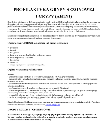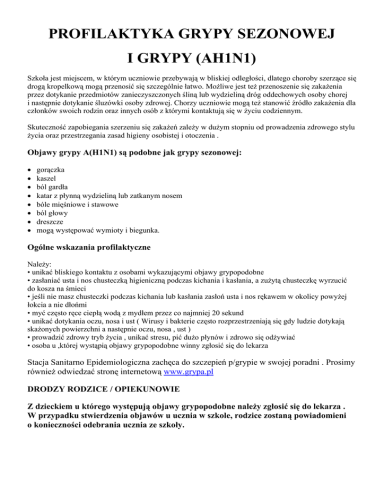 PROFILAKTYKA GRYPY SEZONOWEJ I GRYPY (AH1N1)