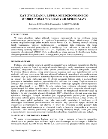 Kąt zwilżania łupka miedzionośnego w obecności wybranych