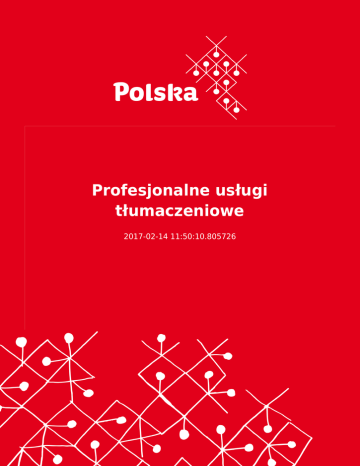 Profesjonalne usługi tłumaczeniowe 2017-02-14 11:50:10.805726 2 Ta oferta nie stanowi informacji handlowej Adres instytucji/firmy ogłaszającej ofertę SKRIVANEK SPÓŁKA Z OGRANICZONĄ ODPOWIEDZIALNOŚCIĄ 00-410 WARSZAWA, SOLEC 22 , Polska Osoba kontaktowa Sylwia Czajka [email protected] Tel: +48 691 709 000 www.skrivanek.pl Opis przedmiotu zamówienia Oferujemy profesjonalne usługi w zakresie: -tłumaczeń pisemnych -tłumaczeń uwierzytelnionych -tłumaczeń ustnych -DTP -lokalizacji - kursów i audytów językowych Nasi Klienci mogą skorzystać z tłumaczeń specjalistycznych z dziedzin takich jak: -prawo -motoryzacja i mechanika -medycyna, farmaceutyka, testy kliniczne -turystyka, logistyka -finanse i bankowość -nieruchomości -reklama i marketing -uroda i kosmetyki -technologie informacyjne -rolnictwo, leśnictwo budownictwo -telekomunikacja -energetyka -i wiele innych Nabywcy z zagranicy ● ● ● ● ● Włochy Wielka Brytania Węgry USA Ukraina 3 ● ● ● ● ● ● ● ● ● ● ● ● ● ● ● ● ● Szwecja Szwajcaria Słowenia Słowacja Rosja Niemcy Łotwa Litwa Hiszpania Francja Finlandia Dania Czechy Bułgaria Białoruś Belgia Austria Certyfikaty ● ● ● ● EN 17100 ISO 9001 ISO 27001 ISO 14001 CPV ● ● Usługi w zakresie tłumaczeń pisemnych Usługi w zakresie tłumaczeń ustnych Typ oferty Sprzedaż 4 Termin składania ofert 13.08.2017 Ważna od 14.02.2017 Branże Doradztwo/consulting/edukacja Nabywcy poza granicami kraju TAK 5
