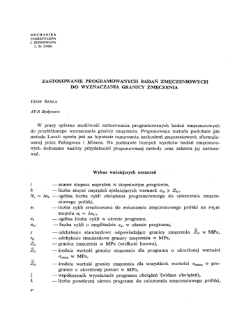 zastą piono obcią ż enie zmienne sinusoidalnie o stał ej amplitudzie, obcią ż eniem programowanym. Skrócenie czasu badań otrzymuje się przez zmniejszenie liczby badanych próbek