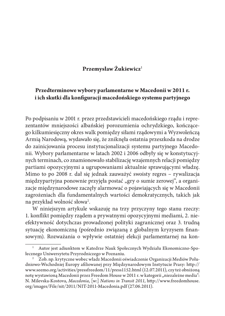 Przemysław Żukiewicz1 Przedterminowe wybory parlamentarne w