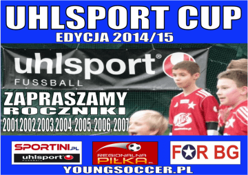 TERMINARZ UHLSPORT CUP ROCZNIK 2001 SKOTNIKI 10-11.01.2015 © Copyright RegionalnaPilka.pl 2012 Ramowy program imprezy Dzień pierwszy sobota 10.01.2015 08:30 Rozpoczęcie rozgrywek grupy A i B 13:50 Rozpoczęcie rozgrywek grupy C i D 19:10 Zakończenie pierwszego dnia Turnieju Dzień drugi niedziela 11.01.2015 08:15 13:21 16:43 Rozpoczęcie gier finałowych Finał C&B Rozpoczęcie gier finałowych Finał A Zakończenie turnieju. © Copyright RegionalnaPilka.pl 2012 Regulamin turnieju 1 CEL ZAWODÓW Promocja piłki nożnej oraz możliwość rywalizacji na doskonałej nawierzchni – prestige system. 2 CEL CHARYTATYWNY Wsparcie dla Fundacji „FOR BG” zajmującej się ułatwianiem ludziom niepełnosprawnym dostępu do aren sportowych. 3 TERMIN I MIEJSCE ZAWODÓW Termin zawodów 10-11.01.2015 Miejsce rozgrywania zawodów – Centrum Sportowo – Rekreacyjne J&J Sport Center Kraków Skotniki ul. Winnicka 40 – www.jjsportcenter.pl. Boisko o wymiarach 55x32 m, bramki 5x2 m. 4 ZASADY UCZESTNICTWA W ZAWODACH W zawodach uczestniczyć mogą zawodnicy urodzeni w 2001 roku i młodsi, posiadający uprawnienia do gry, aktualną kartę zdrowia oraz dokument z zdjęciem potwierdzający tożsamość. Zawodnicy muszą być ubezpieczeni przez swoje macierzyste kluby. 5 ZGŁOSZENIE UCZESTNICTWA W ZAWODACH Drużyny mające zamiar uczestniczyć w zawodach winny przedłożyć organizatorowi listę zawodników z następującymi danymi: imię i nazwisko, datę urodzenia, numer koszulki. Karta zgłoszeniowa dostępna u organizatora w dniu zawodów. 6 STRÓJ DO GRY Drużyny obowiązuje jednolity strój sportowy podczas gry oraz stały numer na koszulce na czas trwania zawodów. Wszyscy zawodnicy muszą posiadać ochraniacze. Gra na nawierzchni ”prestige system” możliwa jest tylko w obuwiu halowym lub turfach 7 SYSTEM ROZGRYWEK System rozgrywania turnieju gwarantuje każdej z drużyn rozegranie 7 meczów. W zawodach wystąpi 20 zespołów, które zostaną podzielone na 4 grupy eliminacyjne. W grupach obowiązuje system gier „każdy z każdym”. O kolejności w grupie decyduje: - liczba zdobytych punktów we wszystkich meczach grupowych, - bezpośredni pojedynek, w przypadku 2 drużyn z tak samą ilością punktów, - stosunek bramek we wszystkich meczach grupowych, - większa liczba strzelonych bramek we wszystkich meczach grupowych, Piłka Uhlsport 350 gram TC 350 LITE (100152001) OFERTA SPECJALNA 59,00PLN 99,00PLN Piłka Uhlsport 290 gram TC 290 LITE (100152101 ) OFERTA SPECJALNA 59,00PLN 99,00PLN © Copyright RegionalnaPilka.pl 2012 Regulamin turnieju - w przypadku większej liczby zespołów, jeśli żadne z powyższych nie rozstrzygnie o kolejności w grupie - dodatkowa tabela między zainteresowanymi. Po rozegraniu fazy grupowej rozegrane zostaną finały: Finał A: awansują dwie pierwsze drużyny. Finał zostanie rozegrany systemem pucharowym o miejsca 1-8 Finał B: awansują drużyny z miejsca trzeciego i czwartego. Finał zostanie rozegrany systemem pucharowym o miejsca 9-16 Finał C: ostatnie drużyny (5 miejsca) z grup zagrają ze sobą systemem każdy z każdym o miejsca 17-20. O kolejności zadecyduje tabela spotkań między nimi. - w przypadku remisu w meczach ćwierćfinałowych, półfinałowych lub spotkaniach o miejsca, o zwycięstwie zadecydują rzuty karne (po 3 zawodników, a jeśli to nie wystarczy to dodatkowo po 1 do rozstrzygnięcia) - podczas meczu drużyna liczy 5 zawodników w polu plus bramkarz. - czas gry 1x14 min w fazie grupowej i 1x15 min w fazie finałowej. 8 SĘDZIOWANIE I PRZEPISY Obsadę sędziowską zapewnia organizator. Obowiązują ogólne przepisy gry w piłkę nożną PZPN za wyjątkiem: - przepisu o spalonym, - bramkarz będący w posiadaniu piłki wprowadza ją do gry ręką i tylko do połowy boiska. W przypadku gdy po wznowieniu gry przez bramkarza piłka przekroczy połowę boiska sędzia dyktuje rzut wolny pośredni z linii bocznej na wysokości środka boiska. - z autu piłka do gry wprowadzana jest nogą. Bramki zdobyte bezpośrednim strzałem z autu nie będą uznane. - jeżeli piłka dotknie kopuły balonu, wprowadza się do gry z linii bocznej, na wysokości gdzie nastąpiło dotknięcie (jak przy aucie). - zmiany zawodników systemem hokejowym, na swojej połowie boiska. Zawodnik wchodzący na boisko może to uczynić dopiero wtedy, gdy zawodnik schodzący je opuści. - z uwagi na jakość nawierzchni dopuszcza się grę wślizgiem. Torba treningowa 30L (100422703) OFERTA SPECJALNA 69,00PLN 94,00PLN Koszulka meczowa LIGA (100313706 ) OFERTA SPECJALNA 59,00PLN 79,00PLN © Copyright RegionalnaPilka.pl 2012 Regulamin turnieju - w przypadku gdy obydwie drużyny występują w strojach podobnego koloru; w znacznikach zagrają goście. - wszystkie rzuty wolne wykonywane są według interpretacji sędziego. - zawodnicy mogą być wykluczeni z gry za nieprawidłowe zachowanie na czas od 1 do 5 minut według interpretacji sędziego, w wyjątkowych sytuacjach na cały mecz. - opiekunowie drużyn zobowiązani są do podania listy uczestników zawodów, z ważnymi badaniami lekarskimi. Za brak ważnych badań lekarskich odpowiadają opiekunowie drużyny. 9 OPIEKA MEDYCZNA Opiekę medyczną w czasie trwania zawodów zapewnia organizator. 10 NAGRODY Za zajęcie miejsc 1 - 3 drużyny otrzymują PUCHARY. Upominki indywidualne otrzymują: najlepszy zawodnik turnieju, najlepszy strzelec, najlepszy bramkarz turnieju. 11 12 Bluza dresowa LIGA (100512606) PORZĄDEK I BEZPIECZEŃSTWO Drużyny zobowiązane są do zachowania ładu i porządku w hali, zebrania śmieci i pustych butelek po napojach po zakończeniu swojego meczu. W hali sportowej zabronione jest spożywanie posiłków. Rażące naruszenia zasad zachowania czystości mogą spowodować nałożenie kary finansowej. Trenerzy i opiekunowie drużyn odpowiedzialni są za swych podopiecznych. Mają obowiązek dbać o ich bezpieczeństwo na obiektach sportowych J&J Sport Center i nie pozostawiać ich bez opieki. Tym s
