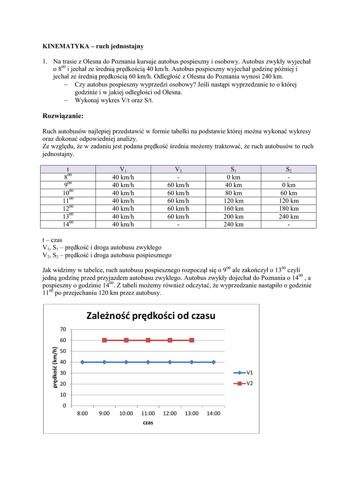 Ze względu, że w zadaniu jest podana prędkość średnia możemy traktować, że ruch autobusów to ruch