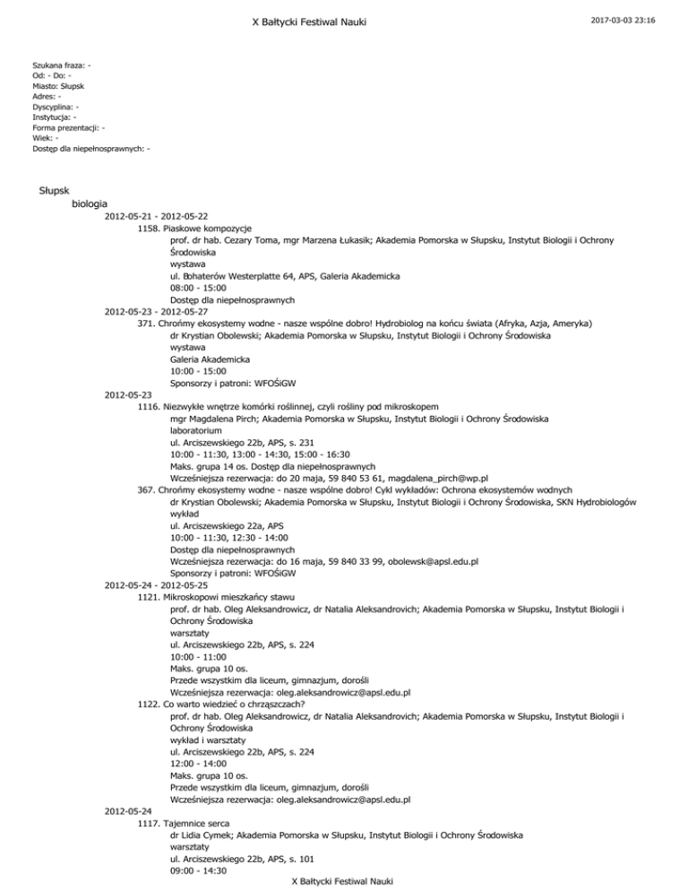 Słupsk biologia X Bałtycki Festiwal Nauki