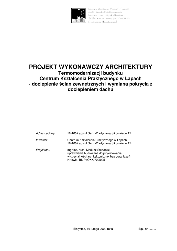 PROJEKT WYKONAWCZY ARCHITEKTURY
