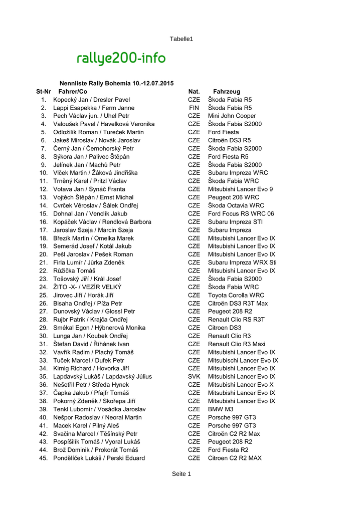 Tabelle1 Seite 1 Nennliste Rally Bohemia 10 - Rallye200-info