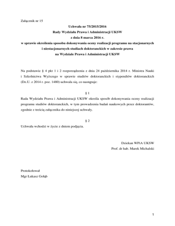 Uchwała nr 75/2015/2016 - Wydział Prawa i Administracji UKSW